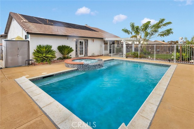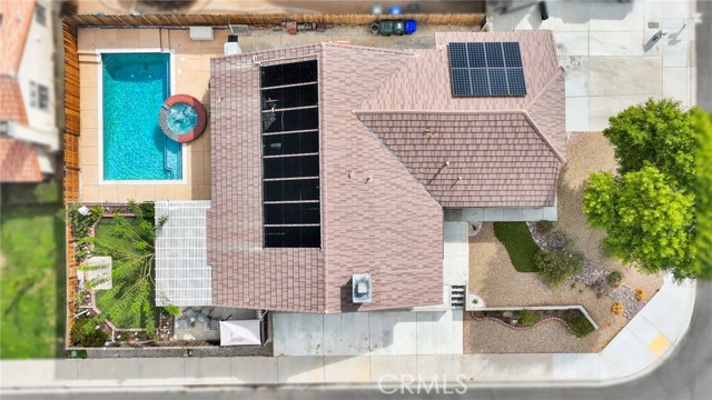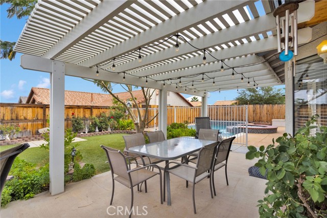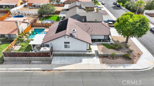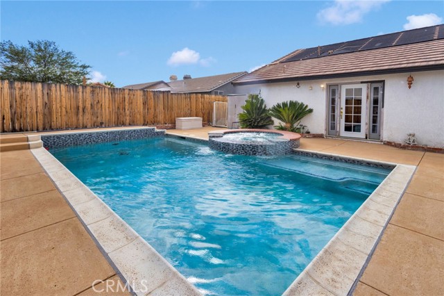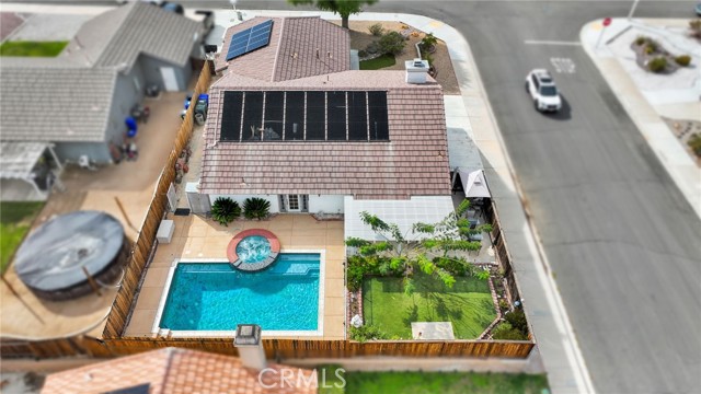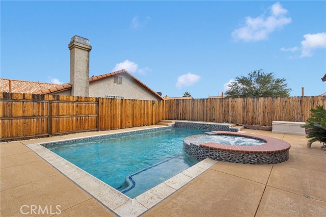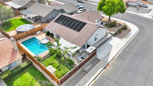 Welcome to this spacious 6-bedroom, 2-bath pool home in Victorville, perfectly situated on a corner lot. Step inside to an open floor plan featuring a cozy dual-sided fireplace that adds warmth and charm to both the living and dining areas. The kitchen flows effortlessly into the living space, making it great for family gatherings and entertaining. The large primary bedroom offers direct access to the backyard. Your own private retreat with a sparkling pool, spa, and beautifully landscaped surroundings. Enjoy the convenience of indoor laundry and peace of mind with a newer HVAC system installed in 2023 and a newer water heater. Plus, the solar will be paid off at closing. With its thoughtful layout, modern upgrades, and inviting outdoor space, this home is ready for you to move in and make it your own.
