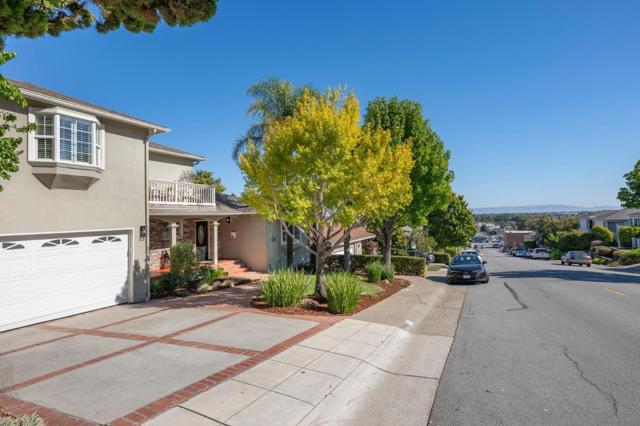 Set high above the Bay with spectacular views, this beautiful 4-bed, 2-bath home blends style with seamless indoor-outdoor living. Designed for both comfort and flexibility, the home features two view balconies and a 560sqft deck perfect for entertaining, relaxing, and watching sunsets. Inside, the open-concept living area showcases refinished red oak hardwood floors, a gas fireplace, stylish kitchen with black marble tile floors, marble countertops, and a glass tile backsplash. A versatile lower-level room with its own private exterior entrance offers endless possibilities: home office, studio, or creative pursuits. The bedroom layout offers two bedrooms and a full bath on the main level, with two additional bedrooms and a full bath upstairs, providing great separation of space. Out back, a serene garden oasis awaits. Raised vegetable beds, a private seating nook, and a lush lawn create the perfect setting for slow mornings, golden afternoons, and garden-to-table living. An attached 2-car garage, additional driveway parking, and easy access to Caltrain, commute routes, and SFO (just 15 minutes away) make daily life effortless. Discover a home where comfort, style, and views come together and all just minutes from shopping, dining, work, play and local conveniences. Keys please!