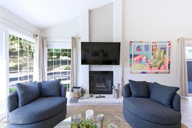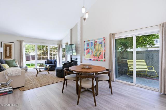 Beautifully updated single story 2 bedroom, 2 bath townhome featuring wood flooring throughout and soaring high ceilings that create a bright open feel with beautiful views out of every window. The stylishly renovated primary bath with floor to ceiling marble shower, a modern double vanity with designer finishes is complemented by a spacious walk-in closet. The large secondary bedroom includes its own private bath, perfect for guests or added privacy. Enjoy indoor/outdoor living with a private patio off the dining area with a large sliding glass door, ideal for relaxing or entertaining with an added bonus with orange and tangerine trees located in your private patio. Also included is a spacious 2 car garage with EV charger. Located in the much sought after Oak Park community and set against stunning hill and mountain views. Experience effortless living with an HOA that includes pool, spa, tennis courts, beautifully maintained greenbelts, exterior watering, trash service, exterior maintenance, and roof coverage. Make your appointment to view this beautiful home today, before it's gone.