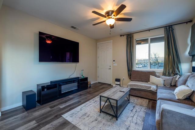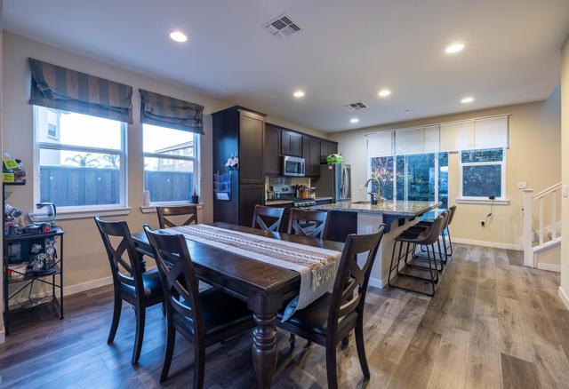 Welcome to this beautiful 3 bedroom, 2.5 bathroom home located in the charming city of Hollister. Spanning 1,793 square feet, this residence offers a range of thoughtful features and amenities. The kitchen boasts a granite countertop, a convenient island with a sink, dishwasher, microwave, exhaust fan, and a gas oven, making it a culinary hub for meal preparation. The home offers a versatile dining layout with a formal dining room, dining area in the family room. The family room is integrated with the kitchen, creating a cozy space by a gas fireplace, perfect for gatherings. The flooring is a mix of laminate and carpet, providing comfort and style throughout. The primary bathroom features an oversized tub and stall shower, while a walk-in closet offers ample storage. The property is situated within walking distance to park and Elementary school.