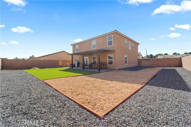 Welcome to your move-in ready oasis at 12977 Rocky Trail Way, a pristine newer home (built in 2021) tucked into the desirable Rocky Trail neighborhood of Victorville. Meticulously maintained and still in “as new” condition, this home offers modern style, generous space and amenities, and a lot with excellent curb appeal. Sitting on a spacious 7,500-square-foot lot, it provides plenty of outdoor room for entertaining, gardening, or future upgrades. From the moment you arrive, you’ll notice a neatly landscaped front yard, and a two-car attached garage that offers convenience and extra storage. Step inside to a bright and open floor plan that flows effortlessly between the living, dining, and kitchen areas — ideal for entertaining or everyday family life. The interior is filled with natural light, high ceilings, and modern flooring, creating a warm and inviting atmosphere. The kitchen features contemporary cabinetry, ample counter space, and a functional layout, making it perfect for both casual meals and gatherings. The primary suite serves as a private retreat, offering generous space, a spa-like en suite bathroom, and a walk-in closet. Additional bedrooms are thoughtfully sized and versatile, ideal for guests, kids, or a home office. Each bathroom is finished with clean, modern fixtures and a neutral color palette that complements the home’s contemporary style. With central air and heating, energy-efficient design, and well-maintained finishes, this home delivers all the modern comforts buyers are looking for.