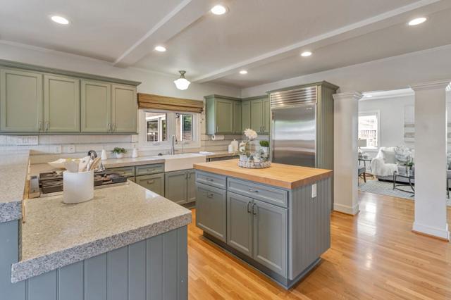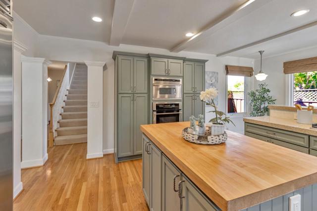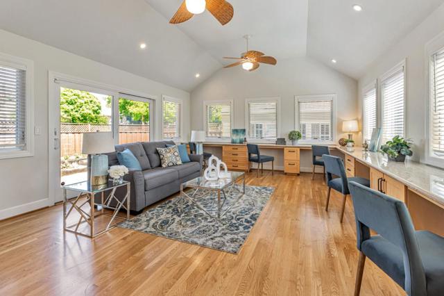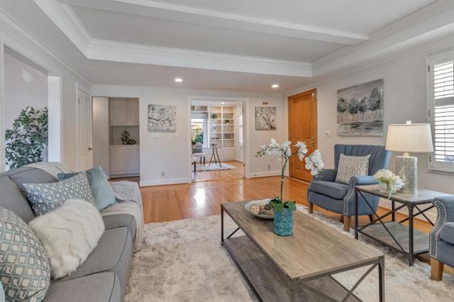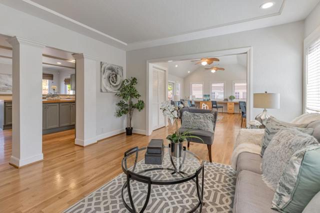 One of the best streets in The RoseGarden. Full bathroom and bedroom downstairs. Access and views to the backyard are from the formal dining room, the kitchen and the large family room. Easy access to main commute freeways without the noise. The kitchen has an island, gas stove, built in refrigerator and easy access to the outside dining patio. Downstairs there is a large bedroom currently used as an office, a full bathroom, formal living room and formal dining room plus a family room, which opens to the large den/recreation room and an interior laundry. The rec. room/family room has large glass doors. Upstairs is three bedrooms and two full bathrooms. The primary bedroom has a huge walk in closet, built in storage, a fireplace and vaulted ceilings. Off the primary bedroom is a small outdoor deck for those quiet moments. The primary bathroom has a spa tub and separate shower, double sinks and vaulted ceiling. Full exterior and interior painted within the last 5 years. The two upstairs hall bedrooms are large with good storage. The detached garage is for two cars with storage area above and off street parking and gated entry to the back garden. Offering modern convenience(mostly remodeled & extended in 2006) with traditional style.The staging has been removed.