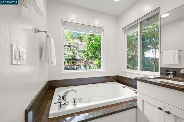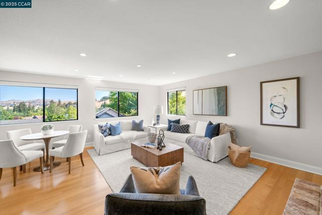Beautiful Rudgear Estates Semi-Custom Home! Discover the perfect blend of comfort and style in this 3 bedroom, 2.5 bath home plus bonus room. The updated kitchen opens seamlessly to the family room with scenic views of the mountains, private dining area, creating an inviting flow for gatherings. Both full bathrooms are generously sized and thoughtfully refreshed, and the bonus room offers flexibility for a home office, gym, or playroom. Step into the backyard retreat — at the top of the yard, a scenic deck with a covered trellis invites you to dine al fresco, enjoy morning coffee, or unwind with sunset views. Multiple living spaces, including a separate living room and guest half bath, make entertaining easy. Ideally located in coveted Rudgear Estates near top Walnut Creek schools, parks, trails, and downtown shopping and dining. Owned solar.