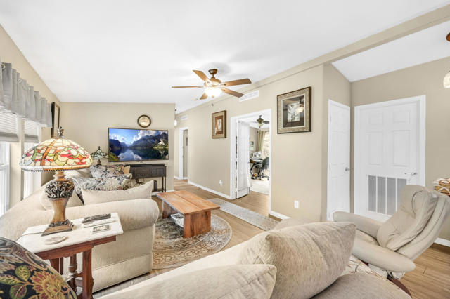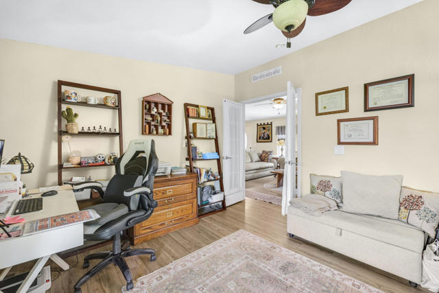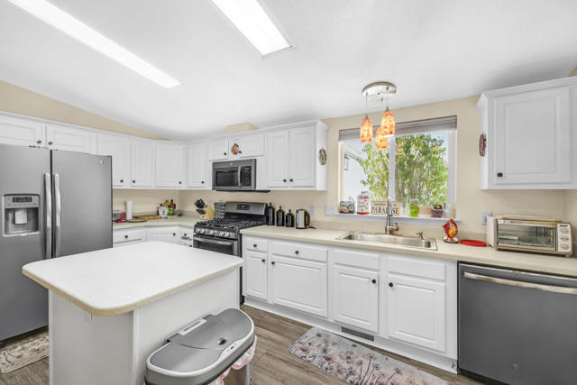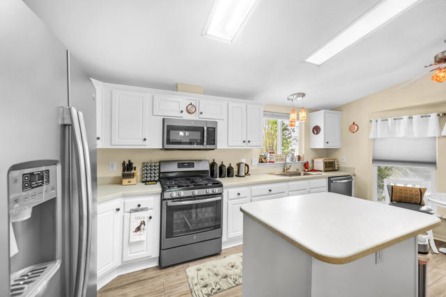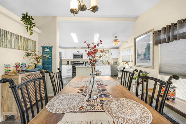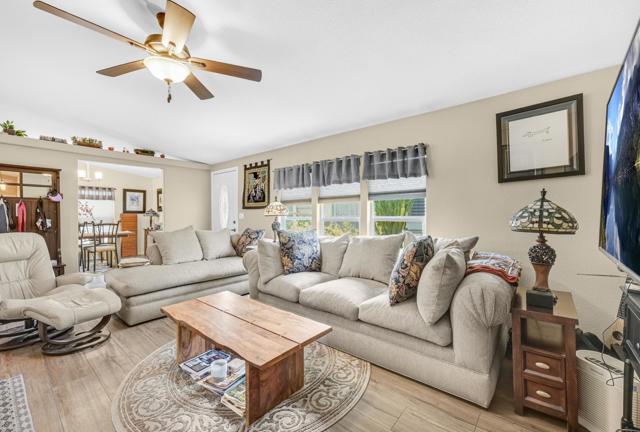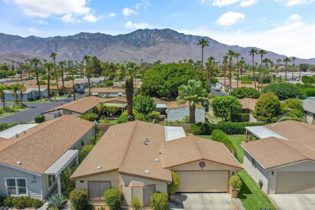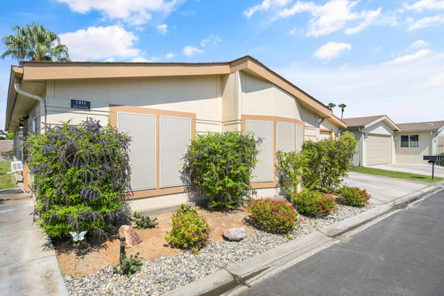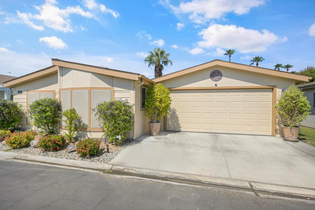 Welcome to this beautifully maintained single-level manufactured home with a 2-stall garage in the 55+ manufactured home community of Desert Sands. Built in 2006, this home is located in the newer home division of Desert Sands. It features new appliances, installed between 2018 and 2021, and includes an extra-large central AC unit. The living room flows into the dining area, and the kitchen features white cabinetry, stainless steel appliances, a center island, and a cozy breakfast nook surrounded by windows. This property includes two bedrooms plus a versatile bonus room that is ideal for a home office, hobby space, or guest area. The primary suite has an en-suite bath with dual sinks, and the secondary bedroom is serviced by a full guest bath. Enjoy the convenience of an attached garage and a spacious backyard with a covered patio, perfect for relaxing, dining, or entertaining. Desert Sands Mobile is known for its lush, year-round green landscaping, and vibrant community lifestyle. Community amenities include a pool, spa, and year-round activities. The location is superb! close to Eisenhower and Desert Regional hospitals, Palm Springs, Rancho Mirage, Palm Desert, and the airport. Don't miss the opportunity to make 1311 Via Playa your home sweet home!