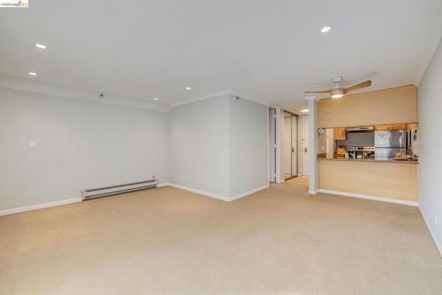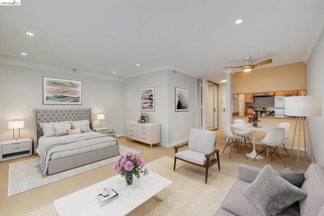 Bright, serene top-floor corner condo at 1332 Shelter Creek Lane — a peaceful retreat with abundant natural light and privacy. This thoughtfully updated unit features custom automatic window shades and tinted windows that extend to an earthquake-retrofitted balcony, creating a comfortable indoor-outdoor space. Inside, smooth ceilings, recessed LED lighting, a modern ceiling fan, and updated faucets give the home a clean, contemporary feel. The bathroom includes a roomy vanity, overhead heater, and generous walk-in closet plus an additional coat closet for excellent storage. New carpet (01/2025). Convenience is exceptional: one assigned covered parking space, a large separate storage locker, and EV charging stations nearby. The community provides 24-hour on-site security and resort-style amenities for relaxation and recreation. Ideal for buyers seeking a move-in ready, well-appointed home in a secure, amenity-rich setting. Saline indoor, outdoor pools, spa, gym, tennis courts and fountains. Close to freeways, YouTube & Walmart Corporate offices, San Bruno Park, and popular downtown San Mateo Ave. and Lunardi’s Market.