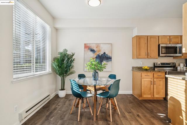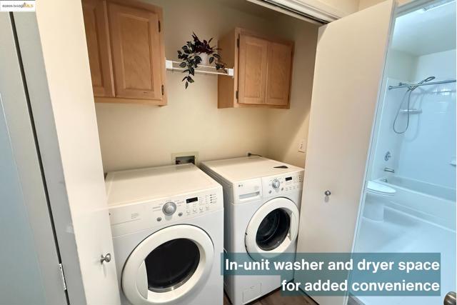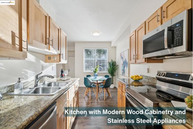 Welcome to 135 Marina Lakes, a beautifully updated 2-bedroom, 1-bath condo in the sought-after Marina Lakes community. This charming home features modern upgrades including luxury laminate flooring. Appliances include dishwasher, electric stove, garbage disposal, microwave and refrigerator. Plus in-unit washer and dryer space for added convenience. Inside, you'll find a bright living space with fresh updates throughout. The kitchen has granite countertops, modern wood cabinetry, and stainless steel appliances. The living room features a fireplace and opens up to a nice shady private patio—perfect for relaxing. Both bedrooms are spacious with ample closet space. Residents enjoy resort-style amenities, including two swimming pools, hot tubs, a fitness center, tennis courts, scenic walking trails, a clubhouse, and 24-hour gated security. Perfect place for pet owners! Located near the Richmond Marina, ferry service to San Francisco, and I-580, this home offers both tranquility and accessibility.