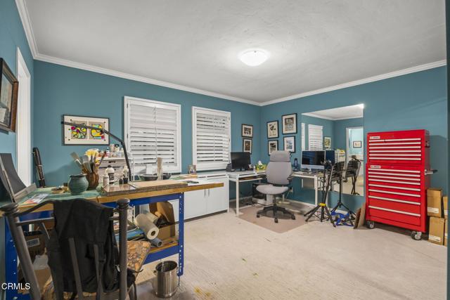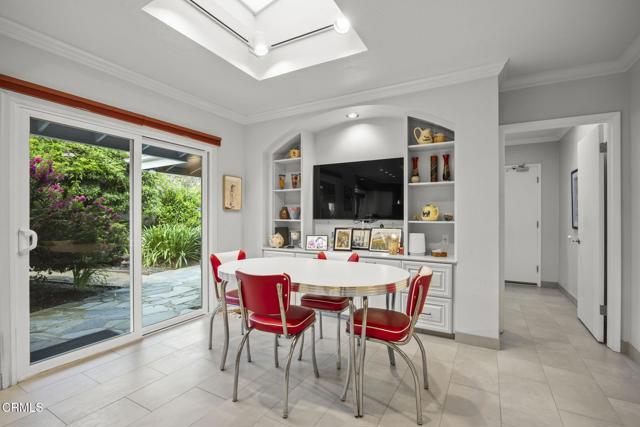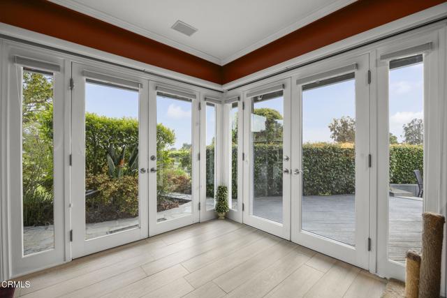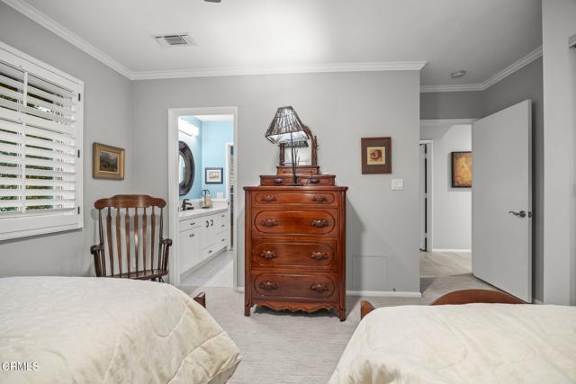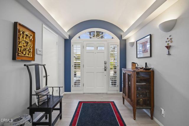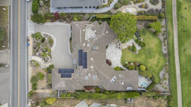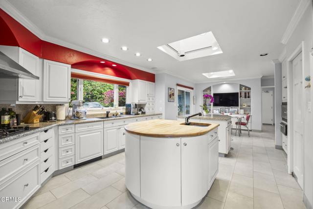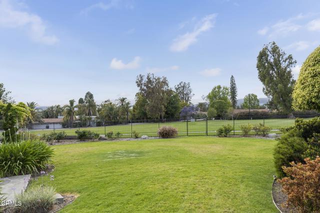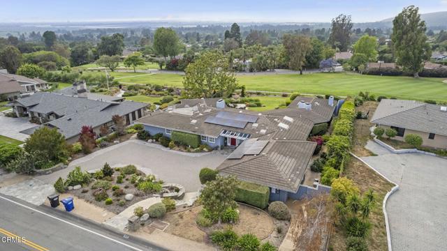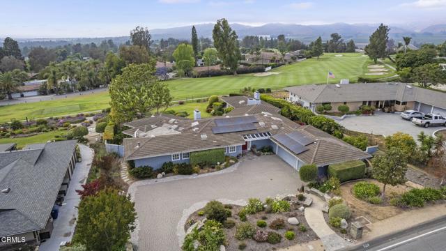 Back on the market with a incredible price improvement! Experience breathtaking golf course and mountain views from this stunning single-story home, ideally positioned on the 16th fairway of the Las Posas Country Club. Designed for true indoor-outdoor living, this property offers expansive multiple flagstone patios, lush landscaping, vibrant rose gardens, and a majestic magnolia tree--all framed by the natural beauty of the golf course. A gated path provides direct access to the fairway, perfect for a peaceful morning stroll or evening golf cart ride.From the moment you arrive, the home makes a refined statement with a oversized paver stone driveway, a bold red front door, and elegant flagstone entry. Inside, soaring ceilings, light wood-look tile flooring, skylights, and abundant natural light create an inviting, airy atmosphere. The home is thoughtfully equipped with an owned solar energy system and backup battery for energy efficiency and peace of mind.Views from almost every room! Formal living and dining rooms each feature a fireplace and French doors that open to the backyard, seamlessly blending indoor comfort with sweeping outdoor vistas. A third fireplace warms the secondary suite, offering a cozy retreat in its own private wing.The chef's kitchen is both stylish and functional, with dual islands (granite for seating and butcher block for prep), white cabinetry, granite backsplash, and premium appliances. A walk-in pantry provides ample storage, while a built-in breakfast nook with yard access adds charm.The spacious primary suite is a true sanctuary, with French doors framing spectacular views, with a office enclave with built-ins, and a spa-like bathroom featuring a copper soaking tub, dual copper sinks, beautiful curved tiled custom shower, private water closet, and a boutique-style dressing room with custom extensive built-ins.Additional bedrooms offer crown molding, plantation shutters, mirrored closets, and built-in storage. The Jack-and-Jill bath includes a tiled tub/shower and skylight, while a marble-accented powder room adds a refined touch for guests.A well-appointed laundry room offers access to the side yard and a beautifully finished three-car garage with built-in cabinetry and extra storage.Capture this rare opportunity to own a thoughtfully upgraded home in one of Camarillo's most prestigious golf course communities--where panoramic views and effortless elegance define everyday living.