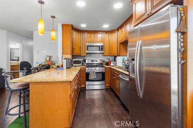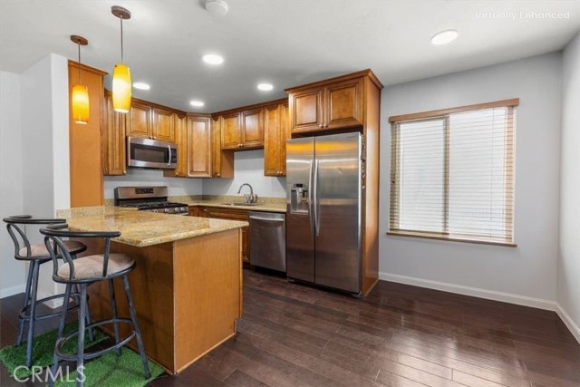 Experience coastal living at its finest in this stunning top-floor end unit located just over a mile from the beach. The spacious open floor plan is filled with natural light and features elegant wood flooring that flows throughout the living areas. Your modern kitchen comes fully equipped with sleek granite countertops and premium stainless steel appliances. The bedrooms offer a bright feel with large mirrored closet doors and updated energy-efficient windows for year-round comfort. This rare corner placement provides extra privacy and a quiet atmosphere in a highly desirable Del Mar location.