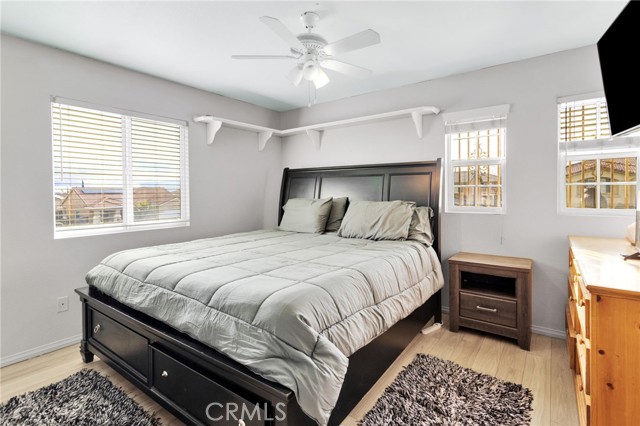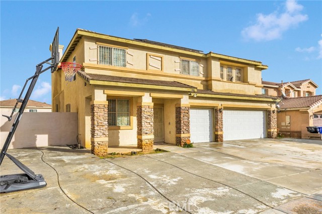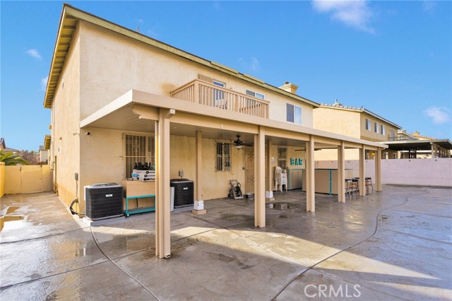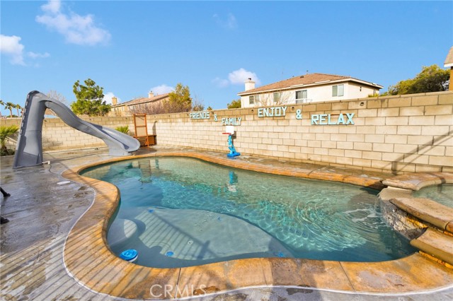 Beautifully Updated Pool & Spa Home with Two Primary Suites! This spacious and well-maintained home offers a wonderful blend of comfort, functionality, and inviting living spaces. Featuring separate formal living and family rooms, the layout is ideal for both everyday living and entertaining. The family room includes a built-in bar and opens to the recently remodeled kitchen, creating a great flow for gatherings. The updated kitchen features new quartz countertops, new cabinetry, a stylish backsplash, a center island, stainless steel appliances, recessed lighting, and a large pantry. A downstairs bedroom and full bathroom provide a convenient space for guests or extended family, along with a separate laundry room. Upstairs you’ll find four additional bedrooms, including two primary suites. The first primary suite offers a spacious bedroom, an updated bathroom, and a large walk-in closet that was originally a sixth bedroom and could be converted back if desired. Bedrooms three and four are generously sized and share a newly remodeled Jack-and-Jill bathroom with double sinks and a tiled walk-in shower. The second primary suite is oversized and includes a private balcony, a large ensuite bathroom with an extended shower, dual sinks, and a walk-in closet. The front yard offers extended concrete for additional parking. The backyard is designed for easy outdoor enjoyment with stamped concrete throughout, a brick wall, an extended covered patio, and a bar area. Enjoy the saltwater pool with waterslide and jacuzzi—perfect for relaxing or entertaining. Additional features include a leased solar system with average utility costs of approximately $151 per month. This home offers generous space, thoughtful updates, and great indoor-outdoor living—ready to be enjoyed by its next owners.