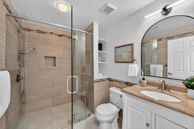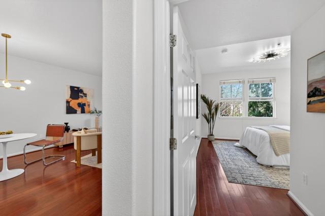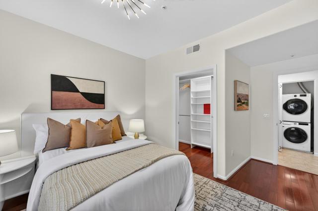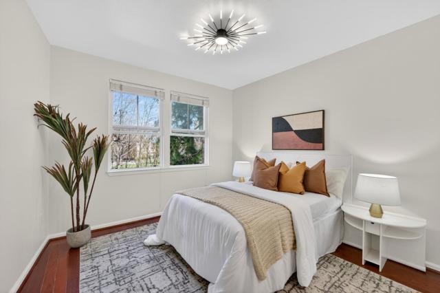 Stylishly updated home in the gated Midtown Plaza community overlooking O'Connor Park. Fresh interior paint, freshly painted kitchen cabinets, and laminate flooring highlight the open living space with granite countertops, stainless steel appliances, a brand new dishwasher, new in-unit washer/dryer, and a brand new modern contemporary ceiling fan and lighting fixture. The renovated bathroom features a sleek shower stall with niche and infinity drain. The bright bedroom offers abundant natural light and a walk-in closet with built-in shelving. Enjoy a private balcony with peaceful park views. Community amenities include pool, fitness center, clubhouse, and secure underground parking with elevator access. Convenient to Hwy 280, Santana Row, Valley Fair, shops, restaurants, and cafes.
