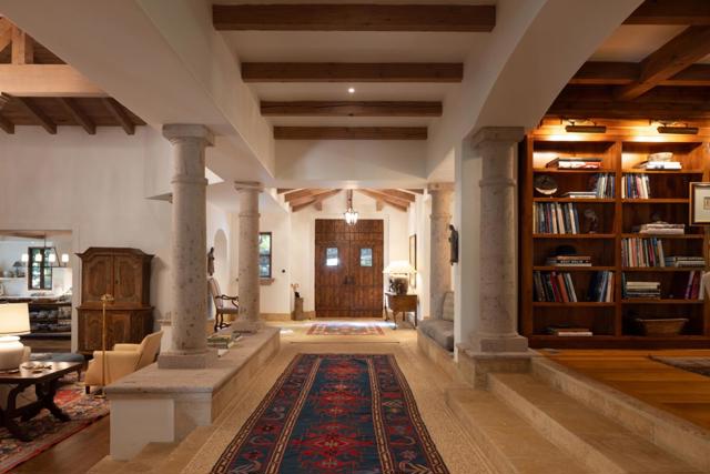 Tucked within the privacy of the Santa Lucia Preserve, rest this reimagined timeless hacienda retreat offering peace, space, and refined craftsmanship. Set on over 12 acres along a seasonal stream just beyond The Preserve Golf Club, the property is surrounded by majestic heritage oaks and a flat, usable yard that enhances its calm, natural beauty. The over 7,000 square foot estate includes 5 bedrooms and 5.5 baths, featuring a soaring great room with vaulted ceilings, formal dining room, dedicated office, wine tasting room, exquisitely updated kitchen, laundry room and pantry, and a 3-car garage. Finishes of the highest quality Carmel stone, Cantera columns, reclaimed timbers and handcrafted Canadian doors blend warmth with elegance. A thoughtfully integrated audio and lighting system completes the modern comforts. Ideal for entertaining or quiet evenings alike, the home invites seamless indoor-outdoor living, with multiple fireplaces and tranquil patios throughout. After a day spent hiking, golfing, riding or exploring the 20,000-acre Preserve, return to your own serene oasis.