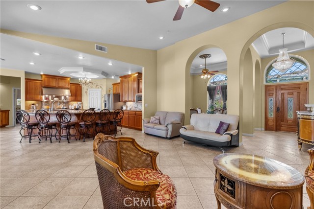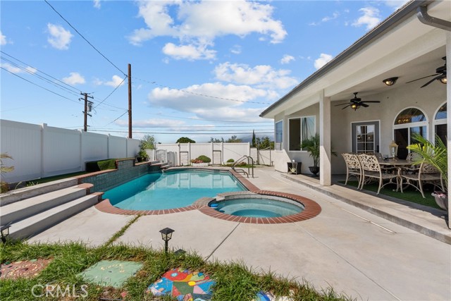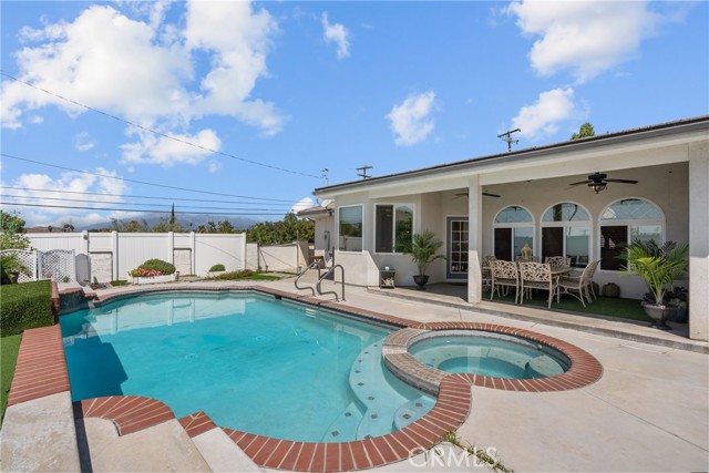 Nestled in a highly desirable neighborhood, this stunning one-story home offers the perfect blend of comfort, style, and functionality. Built in 2005 and set on an expansive 11,500 sq ft lot, this beautifully maintained property boasts 3 spacious bedrooms, 3 full bathrooms, and exceptional curb appeal with lush landscaping and a gated front entry for added privacy. Step inside to find a warm and inviting formal living room that flows effortlessly into a cozy family den featuring a charming fireplace—ideal for relaxing evenings or entertaining guests. The chef’s kitchen is a true highlight, showcasing elegant granite countertops, newer cabinetry, and high-end stainless steel appliances. With an open-concept layout, the kitchen overlooks the family room and connects to a large secondary living area, creating a bright and airy space perfect for everyday living. Each of the three bedrooms is generously sized with ample closet space, offering comfort and privacy for family and guests alike. Step outside into your private backyard oasis, where a large in-ground pool awaits—perfect for summer fun and outdoor entertaining. The spacious yard provides endless possibilities for gatherings or simply relaxing in a serene setting. Additional features include high vaulted ceilings with elegant crown molding, direct access 2-car garage (side-by-side), gated front yard for added security, convenient location near the 210 freeway and Cal State San Bernardino. This is more than just a house—it's a place to call home. Don’t miss your opportunity to own this meticulously maintained gem.