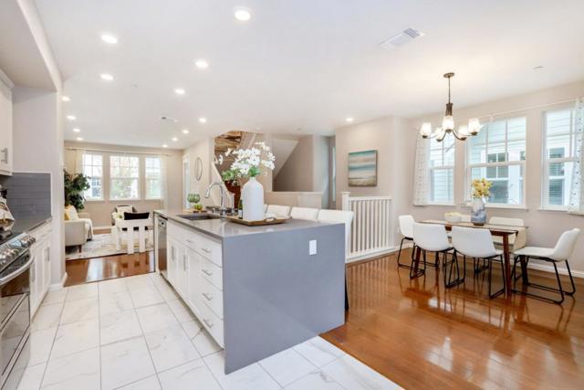 Welcome to this gorgeous 7-year new End-Unit townhome nestled in the highly desirable Radius community. Experience the perfect blend of comfort and convenience in this bright and open-concept home. Features 4 bedrooms, 3.5 bathrooms and 1,904 sq ft of living space. The spacious living and dining area with abundance of natural light and a private balcony, creates a warm and welcoming atmosphere. The gourmet kitchen boasts with quartz countertops, designer backsplash, huge center island, premium cabinetry, and high-end stainless-steel appliances. Spacious master suite features a luxurious ensuite bathroom with dual vanities, a large walk-in closet, elegant light fixtures, and separate bathtub & shower. Convenient ground-level bedroom with a full bath, ideal for guests, home office. Attached 2 -car garage with ample guest parking. Excellent location: walk or bike to VTA Light rail, Caltrain, downtown Mountain View, and major tech companies (Google HQ, Microsoft, Linkedln, Synopsys, Samsung, etc.).Easy access to Hwy 237/101/85 and central expressway. Top-rated Mountain View schools: Mountain View High and new school Jose Antonio Vargas Elementary. Newly constructed Pyramid Park nested in the community: playgrounds, dog parks, spot courts and BBQ area. Low HOA dues ($341/month).