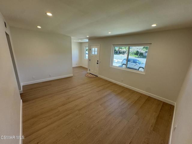 Welcome to this beautifully remodeled, single-story home in the desirable Rancho Sequoia neighborhood. Freshly painted throughout with smooth ceilings, updated dual pane windows, and gleaming wood laminate floors, this home offers comfort and style. The inviting living room flows seamlessly into the cook's kitchen featuring quartz countertops, updated cabinetry, and a large stainless-steel sink - perfect for everyday living. Both bedrooms are ample sized, with one offering direct access to the backyard through a sliding glass door. Additional highlights include central air and heat, an indoor laundry area, and a convenient direct access 1 car garage. Tucked away on a quiet interior lane just off the main street, this home offers easy access and ample parking. Located just minutes from local parks, shopping, and schools, it's the perfect blend of privacy and convenience. Refrigerator is included.