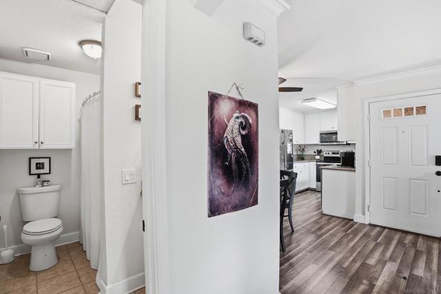 Don’t miss this opportunity to take over a beautiful top floor condo with a VA assumable loan in a quiet gated community. Offering 2 bedrooms, 1 bath, and just under 800 sq ft of bright and inviting living space, this home blends comfort and style with modern finishes from a recent renovation, in unit laundry, and a fully permitted AC system, one of only a few homes here with full air conditioning. Step onto your private balcony overlooking a peaceful green courtyard and enjoy the sense of calm throughout. The community offers resort style amenities including a pool, spa, fitness center, BBQ area, and two assigned parking spaces. Conveniently located just minutes from Target, Costco, and easy access to I-8 and 67. Call today to schedule your private tour, this one will not last.
