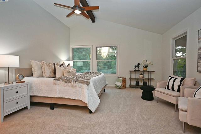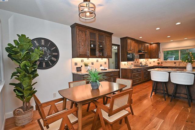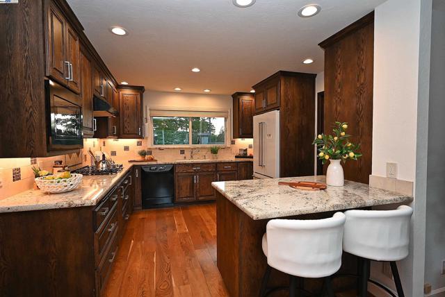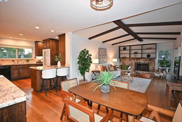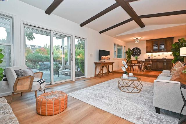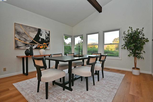 Fabulous Mt. Diablo view, up a private lane. Serene setting. Within a few blocks of Roundhill Country Club. 4 bedrooms, 2.5 baths, 3 car garage. Only one step to home from garage. Updated kitchen and baths. New vinyl flooring family room and dining room. New carpet and baseboards in bedrooms. Kitchen with soft close cabinets, hidden hinges, granite slab counters, undermount lighting. Dual pane double hung Andersen windows and sliders. Washer, dryer, refrigerator, outdoor barbecue, shed, weather meter, included. New landscaping, level backyard area with large grass area, plus patio for outdoor dining while enjoying the awesome view. Clear pest report section 1- and one-year roof repair warranty. No HOA.