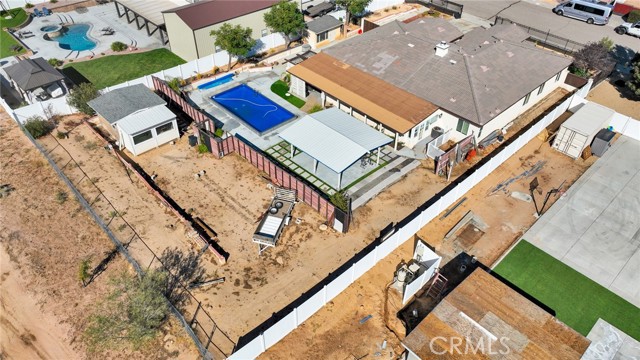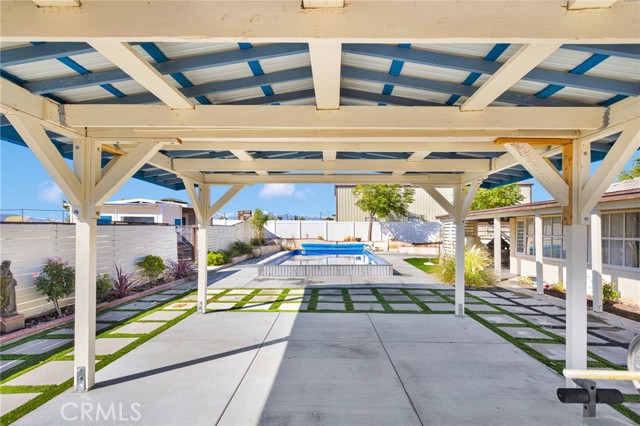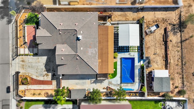Make a splash with this modern 4-bedroom beauty! This home is all about comfort, style, and space to enjoy. Step inside to a welcoming formal living and dining area, a cozy family room with fireplace, and a kitchen designed for both chefs and snackers alike — complete with an island, solid-surface counters, Cherry Maple cabinets, pantry, and shiny new appliances. Out back, it’s your own private retreat: a sparkling in-ground pool, shaded pergola perfect for lounging or weekend BBQs, and extra outbuildings for all your storage needs or hobby projects. The impressive gated entrance sets the tone the moment you arrive, and the fenced lot with views gives you room to breathe. Add in a long-lasting tile roof, convenient indoor laundry, and a spacious 3-car garage — this one checks all the boxes. Come see it today and start picturing your summer pool parties already!