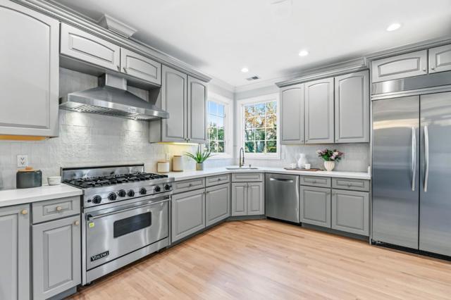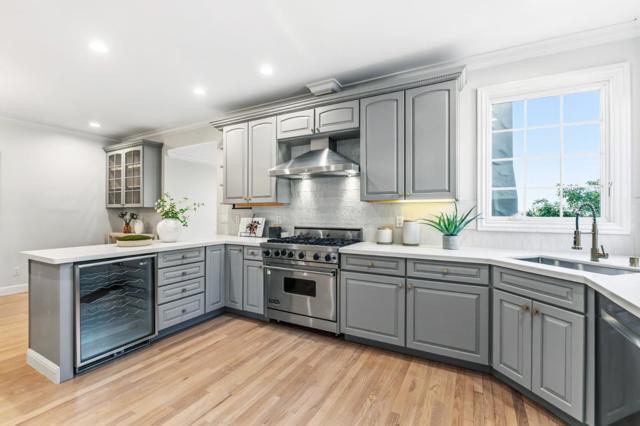 Gorgeous home with 3 bed plus an office in Eastern Addition, nestled in one of Burlingames most sought-after neighborhoods and served by top-rated schools, this fully remodeled residence blends timeless Tudor-influenced English Cottage design with modern comfort. Built with newer construction standards and building code, it offers enhanced structural integrity and lasting quality. Sun-filled interiors feature expansive windows, recessed lighting, and freshly refinished hardwood floor throughout. The elegant living room with fireplace is complemented by a separate family room with its own fireplace, creating versatile spaces for everyday living and entertaining. The chefs kitchen showcases quartz countertops, custom cabinetry, and high-end appliances including a built-in refrigerator and oven, with windows framing serene greenery outlooks. The primary suite is a private retreat with dual vanities, soaking tub, walk-in shower, and a spacious walk-in closet. Additional highlights include beautiful views in both levels, a dedicated laundry room with cabinetry, a private backyard, and AC. Complete with a garage and driveway parking, this home offers comfort and convenience in a premier Burlingame location. A rare opportunity to own a newer-built home in a classic neighborhood setting.