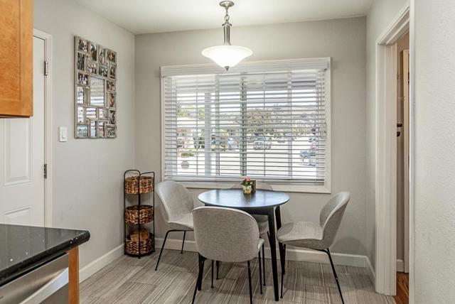 Welcome to this charming 3-bedroom, 1-bathroom home nestled in the vibrant city of San Leandro. With a spacious 1,296 sq ft layout, this home offers both comfort and functionality. The kitchen is a standout feature, equipped with modern amenities including a garbage disposal, microwave, quartz countertops, an electric oven range, and a refrigerator, making meal preparation a delight. The home boasts a variety of flooring options, including tile, carpet, vinyl/linoleum, and hardwood, adding character and warmth throughout. Gather around the cozy fireplace in the living room, which seamlessly connects to the dining area. Laundry facilities are conveniently located in the garage, with electricity hookups available for both 110V and 220V. The property is situated within the San Leandro Unified School District. Enjoy the convenience of more than one bedroom on the ground floor, and a well-maintained updated bathroom featuring both a shower and tub. With a minimum lot size of 4,400 sq ft and a single garage space, this home is perfect for those seeking comfort and style.