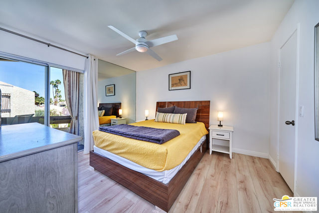 Whether you're searching for a low-maintenance second home, a stylish vacation retreat, or simply thinking about downsizing, this beautiful fully furnished Palm Springs condo has everything you need. The living space showcases trendy design elements, including wood-style flooring, a soothing neutral palette, and floor-to-ceiling mirrors that enhance the sense of space. The kitchen comes equipped with all necessary appliances, while the dining area features a ceiling fan and recessed lighting throughout adds a modern touch. A private balcony overlooking swaying palm trees fills the interior with natural lightperfect for savoring your morning coffee. The bedrooms are comfortably sized, with one offering mirrored closet doors, and you'll enjoy the convenience of two full bathrooms. For outdoor relaxation, the community offers a pool and spa, along with a BBQ areaideal for soaking up the sun or enjoying a quiet afternoon with a good book. Located close to shopping and dining options, this home is perfect for anyone seeking an easy, vacation-style lifestyle. Come explore this peaceful community and schedule your visit before it's gone!
