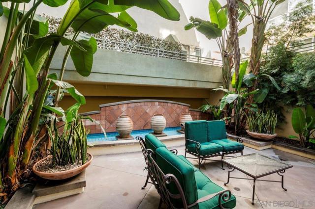 Village Walk #508 is a rare 1-bedroom plus den (optional second bedroom/office/retreat) that offers over 1,200 square feet of well-designed living space in the heart of Little Italy, one of Downtown San Diego’s most vibrant and walkable neighborhoods. The home features an open-concept layout with a spacious living area, hardwood floors, fresh interior paint, and a private balcony capturing the energy of city living. The kitchen includes stainless appliances, granite countertops, recessed lighting, a pantry, and ample storage. The primary bedroom overlooks the interior courtyard and offers a peaceful retreat with a spacious walk-in closet. The bathroom is complete with a dual vanity, soaking tub, and separate step-in shower. Additional highlights include arched doorways, in-unit laundry, very convenient elevator access, a storage locker, and a secured parking space. An exceptional offering in Little Italy, surrounded by top-tier dining, the waterfront, and the energy that defines Downtown San Diego living. Village Walk is a vibrant mid-rise community ideally situated in the heart of Little Italy, just steps from an exceptional collection of shops, cafés, art galleries, and over 70 award-winning restaurants and patio dining destinations along charming India Street. Little Italy’s walkable streets lead to weekly farmers markets, outdoor plazas, parks, and waterfront access that all offer a true urban-village lifestyle right at your doorstep. Residents enjoy a beautifully designed central courtyard with a tranquil fountain and comfortable seating areas, perfect for relaxing and socializing. Premium community amenities include a fully equipped fitness center, inviting resident clubroom, and secure bike storage in the garage. With its unbeatable location and thoughtfully curated spaces, Village Walk delivers both convenience and community in one of San Diego’s most desirable Downtown neighborhoods.