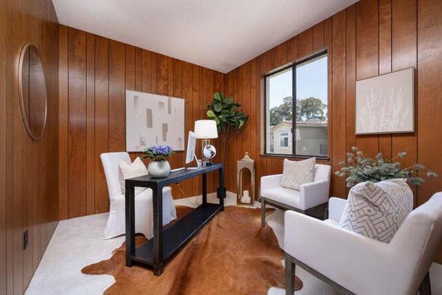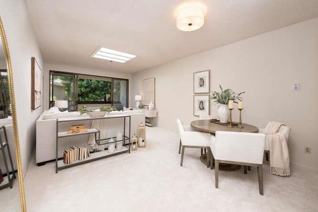 Welcome to this bright top floor condominium residence offering a unique blend of comfort and charm. One bedroom + den has multiple skylights that bathe the living space in sunshine throughout the day. Adjacent to the living room, the den provides an ideal space for home office, reading nook, or guest area. Kitchen, while compact, is efficiently laid out with ample cabinetry, updated appliances, and just the right amount of counter space for everyday cooking. Primary bedroom has huge closet with mirrored doors. Covered balcony off living area. 2 car parking + 2 storage spaces. Complex features pool/spa/BBQ area, exercise room, social room. Located in the heart of downtown Burlingame with its many amenities. EZ access to transportation and commuting routes. Staging has been removed from Unit.
