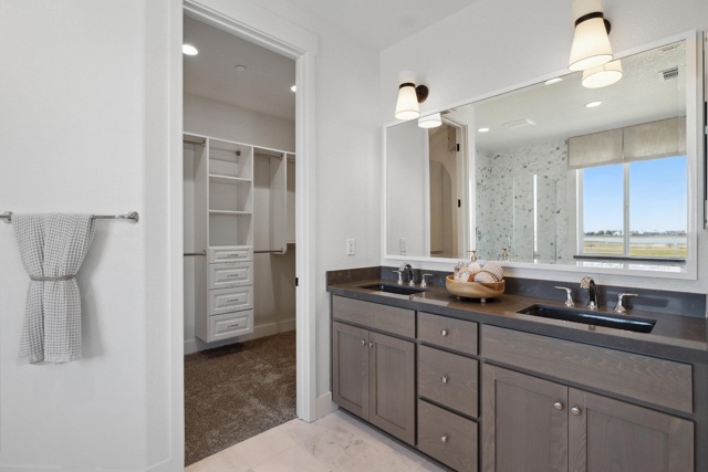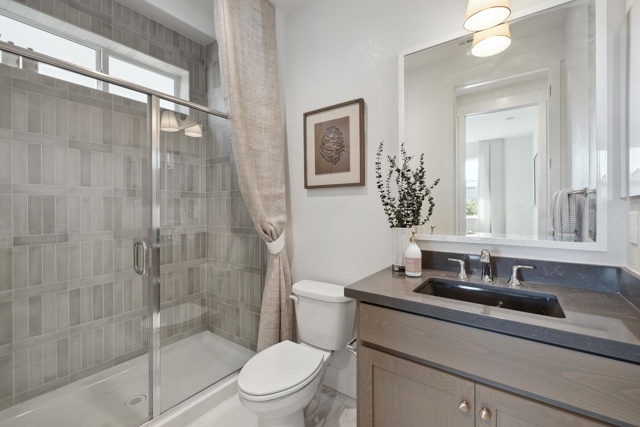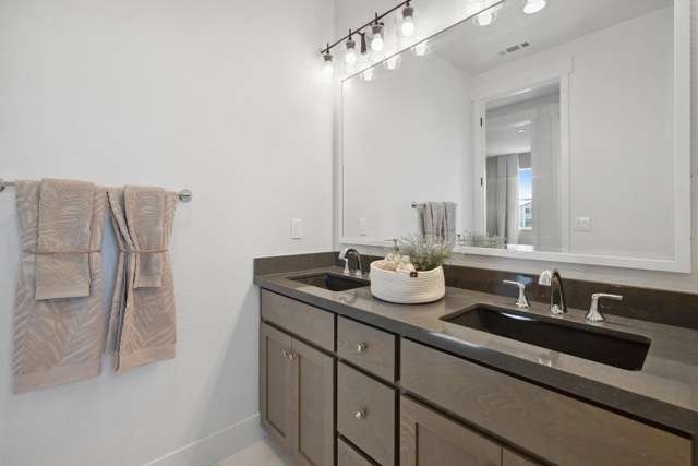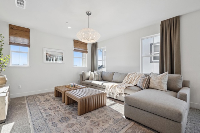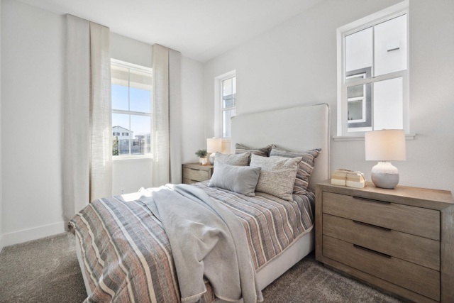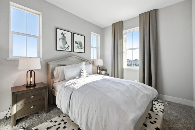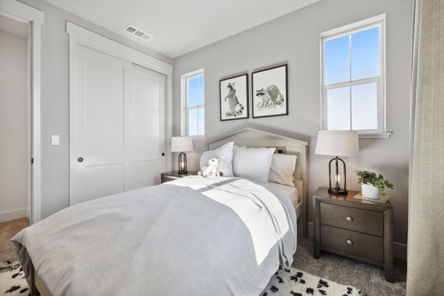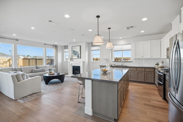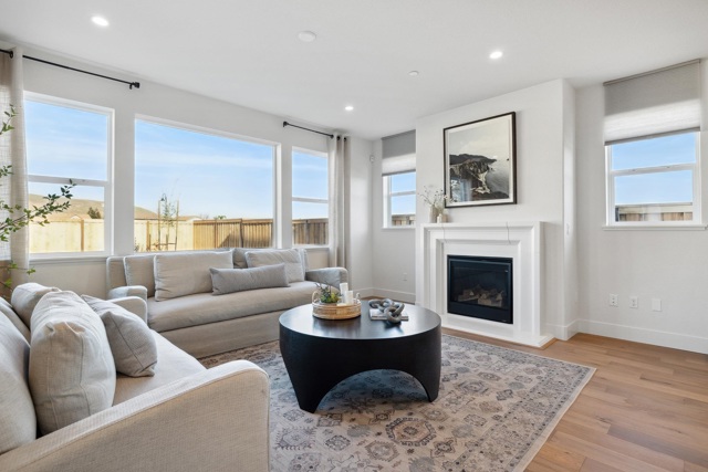 The Bennett Model Home For Sale!! A stunning two-story home featuring 4 bedrooms, 3 bathrooms, and 2,474 sq. ft. of living space. Upon entering, you’ll find a 4th bedroom with a walk-in closet and an adjacent full bathroom with a walk-in shower-ideal for guests, in-laws, or a home office. As you move through the entryway, the home opens up to a spacious open-concept living area that seamlessly connects the dining room, family room with a cozy fireplace, and chef’s kitchen.The kitchen is designed with a luxurious feel including a full quartz backsplash and pendent lighting. The livingroom features dual patio sliding doors that lead to a built in covered patio.The home has stunning large windows for natural lighting throughout. Upstairs, a versatile loft for flexible living, a laundry room, thoughtfully placed for comfort and convenience, and two additional bedrooms that share a full bathroom with a dual vanity, tub, and shower. The primary suite serves as your private retreat, featuring a spa-inspired en-suite bathroom with a soaking tub, tiled walk-in shower, dual vanity, and a large walk-in closet to complete the space. Beautifully designed Model home, Owned solar included.