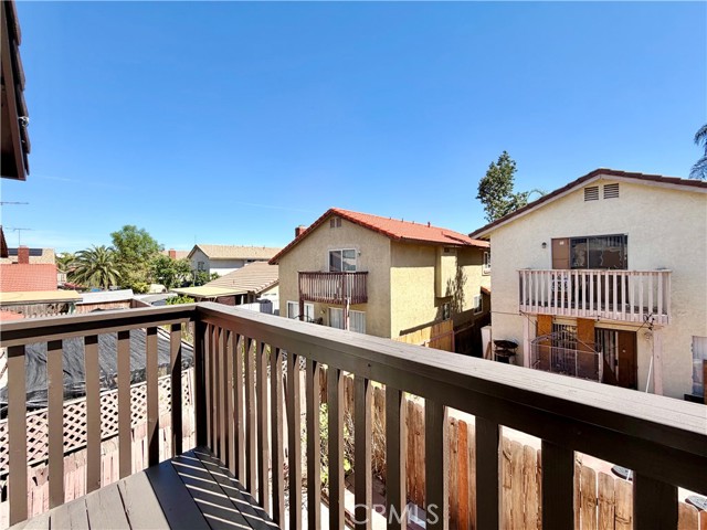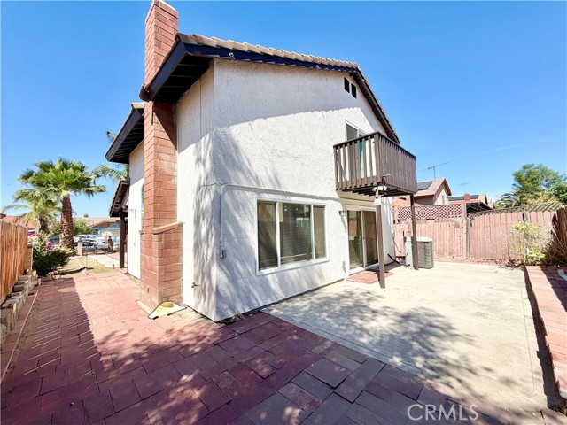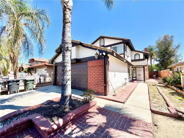 Welcome to Apple Creek! This home offers a gated entry for added security, fresh interior paint, and low-maintenance landscaping in both the front and backyard. As you enter, you are greeted by the living room featuring elevated ceilings that create a spacious, open feel. Enjoy the stylish flooring as you make your way to the powder room conveniently located to the left near the staircase. The kitchen area includes a dining space and provides ample wood cabinetry for storage. Adjacent to the kitchen is a versatile bonus room with direct access to the garage. Upstairs, you’ll find updated carpet throughout the hallway and all bedrooms. The two secondary bedrooms are located at the end of the hall, offering natural light and closet space. In the center of the hallway is a full bathroom featuring a shower and tub combo. On the opposite end, the primary bedroom offers an en-suite restroom, generous space, great closet storage with shelving, and direct access to a private balcony. The en-suite bathroom also includes a shower and tub combo. Out back, the generously sized yard offers a variety of possibilities for outdoor enjoyment or customization. Conveniently located near Perris High School, shopping, dining, freeway access, and more. Schedule your private showing today before it’s gone!