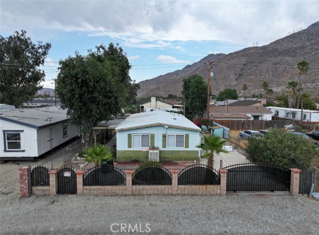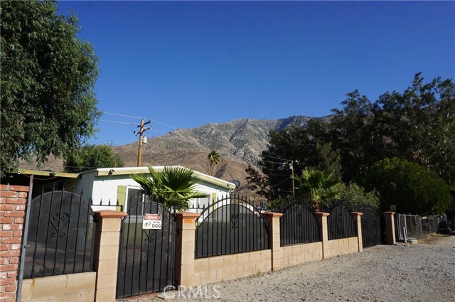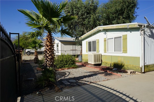 Location, Location, Location, you may have found a hidden gem in Southern California with potential for the person who may be looking to be off the grid without being off the grid!? If you are interested in desert seclusion, however, you still want to be on a paved street, with utilities, and want to be away from the city, without being too far from civilization, with shopping and restaurants as close as two to four miles away. This area is not for everyone. If you don't mind the desert elements that propel the local wind generators, the undeveloped land, just a few hundred feet from the front door of this waiting-to-be-rehabbed manufactured two-bedroom, two-bath home, offers lots of potential. The lot, from street to street, is fenced in; a toy trailer or RV can be pulled onto the fenced, and gated 8,712 sq ft lot. On the property sits a detached wooden storage shed, the home has a covered patio, & a paved driveway with a rolling gate for off-street vehicle parking. Ask your favorite Realtor to make an appointment so you may visit this property. If you are not familiar with Cabazon, here are some distance estimations. Please double-check for yourself: This property is about 100 Miles East of Los Angeles, about 25 miles West of Palm Springs, about 3 miles South of the Morongo Casino, A few miles South/East of the Cabazon outlets, about 15 miles East of the Walmart in Beaumont.