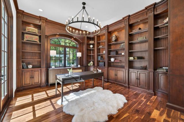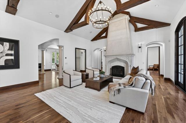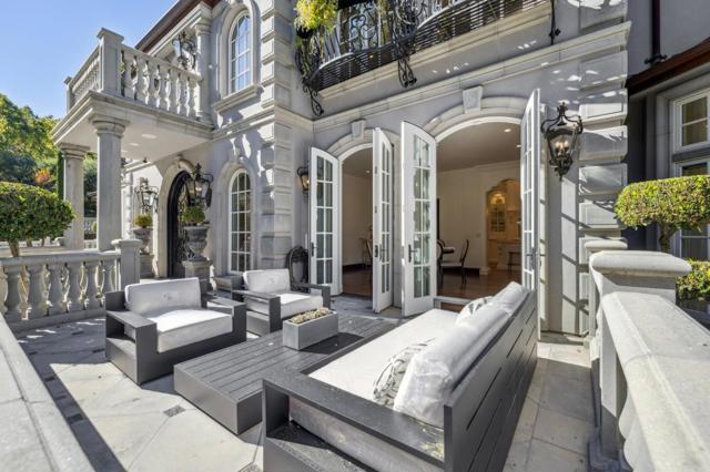 This stunning mansion is located in Saratoga's most prestigious Montalvo neighborhood, and has just completed a beautiful interior remodel.. Wrought iron gates and granite cobblestone driveway welcome you to this one-of-a-kind masterpiece on almost one acre. The French limestone balustrades and dormer windows overlook exquisite landscaped gardens. The home features high-quality custom finishes, including gorgeous new Taj Mahal counter tops, solid walnut woodwork, new lighting and artisan-crafted fireplaces. Grand formal rooms are complemented by a gourmet kitchen featuring a limited edition Viking range, quaint dining nook, grand family room, and office/library. Five bedrooms on two levels include two suites upstairs, including the luxurious primary suite with fireplace, newly customized walk-in closet, and spa-like bath. A detached ADU features leaded glass windows, built-in cabinetry, fireplace, kitchen and full bath. Below features a full gym. Exceptional grounds feature a pool and spa, sports court, two outdoor kitchens, two fireplaces, pizza oven, a vast level lawn perfect for large outdoor gatherings or possible SB9, an architectural gazebo, and a redwood grove. Minutes to Villa Montalvo Arts Center, Saratoga Village, and top-rated Saratoga schools.