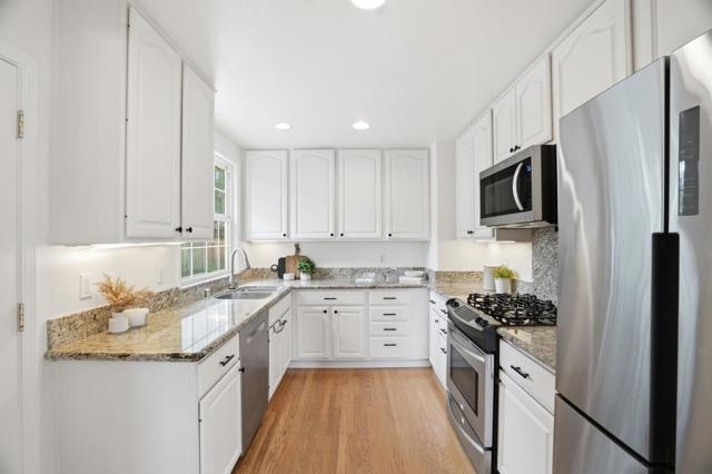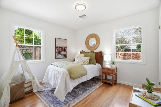 Welcome to this charming single-family home located in South Willow Glen. With a living area of 1,110 square feet, this home offers three comfortable bedrooms and one full bathroom featuring a shower over tub with tile flooring. The kitchen is a highlight, boasting granite countertops, a gas cooktop, oven, refrigerator, and dishwasher, making it both functional and stylish for all your culinary needs. The home features hardwood flooring throughout, and tile in the bathroom providing a blend of elegance and easy maintenance. Lot of natural light in the living room and bedrooms. Central AC and heating ensure year-round comfort, while energy-efficient features such as double pane windows help maintain a pleasant indoor climate. The practical laundry setup is conveniently located in the garage, which also provides one parking space. Situated on a lot size of 5,450 square feet, this property falls within the San Jose Unified School District, offering access to local schools. Don't miss the opportunity to make this charming Willow Glen home your own!