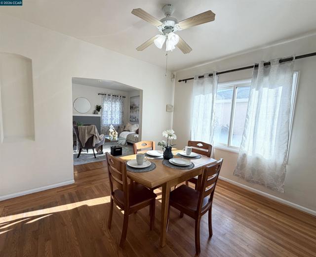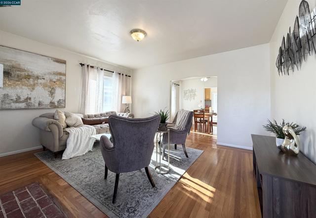 Beautifully renovated home offering 1,070 sq ft of stylish living space on a spacious lot. Features central heating and air conditioning, a bright and inviting living room, and a formal dining room ideal for everyday living and entertaining. Gourmet kitchen is appointed with elegant marble countertops, and ample space for cooking and hosting. Well-sized bedrooms are filled with natural light, creating a warm and comfortable retreat. Two brand-new bathrooms feature modern porcelain tile and high-end fixtures. Enjoy a long driveway for multiple vehicles parking and a large backyard with fruit trees. Conveniently located with easy access to I-580 and I-880, and within walking distance to shops, restaurants, public transportation, and Bay Fair BART, making commuting and daily conveniences effortless.