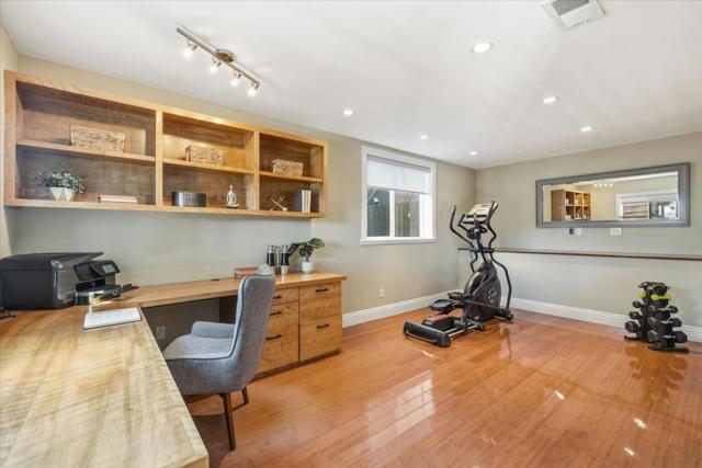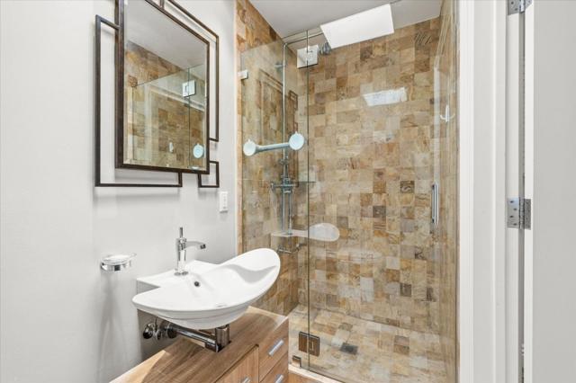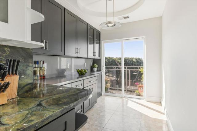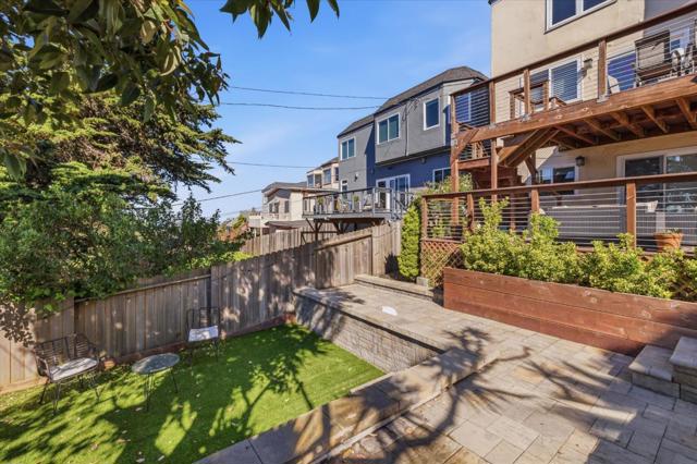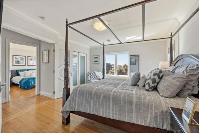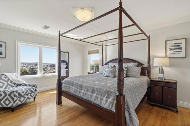 Nestled in Mt. Davidson Manor, this Spanish Mediterranean home blends timeless style with modern comforts. Across three levels, this four-bed, four full and two half-bath residence is perfect for entertaining, relaxation, and everyday living with lovely city and ocean vistas. The main level presents a grand living room featuring recessed ceilings, a cozy fireplace, and beautiful hardwood floors. An elegant dining area flows into a generous kitchen with granite counters, Bertazzoni range, and ample storage. Two bedrooms, including a serene primary suite with charming views and a spa-inspired bath, complete this floor. The middle level is designed for both gathering and retreat, with a spacious family room opening to a deck with views for indoor-outdoor living. This level also includes two bedrooms, 2.5 baths, laundry, and access to both the garage and a separate exterior entrance. The lower level offers a flexible media room with half bath and access to a large deck overlooking a terraced yard. The backyard features multiple zones for entertaining and play, with tiled patios, and garden areas. A short stroll to Ocean Avenue shops, cafes, Whole Foods, and public transit, with quick access to 101/280, this home offers comfort and convenience in a serene San Francisco neighborhood.