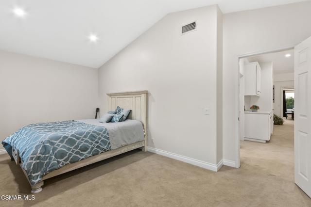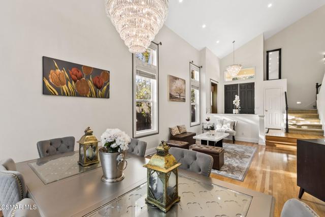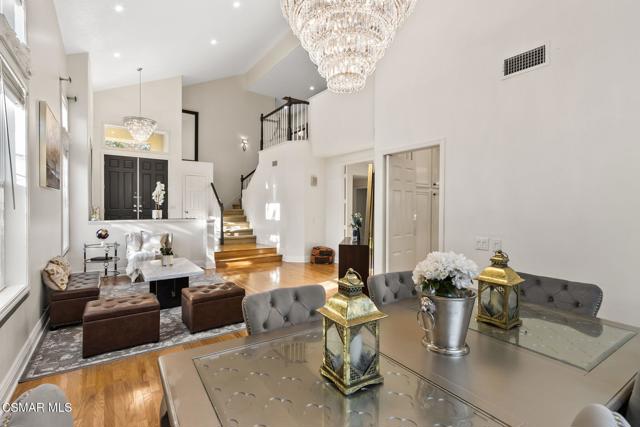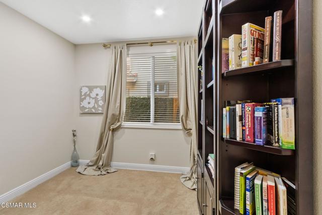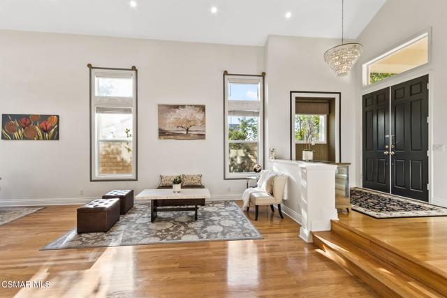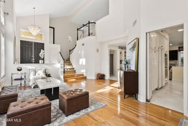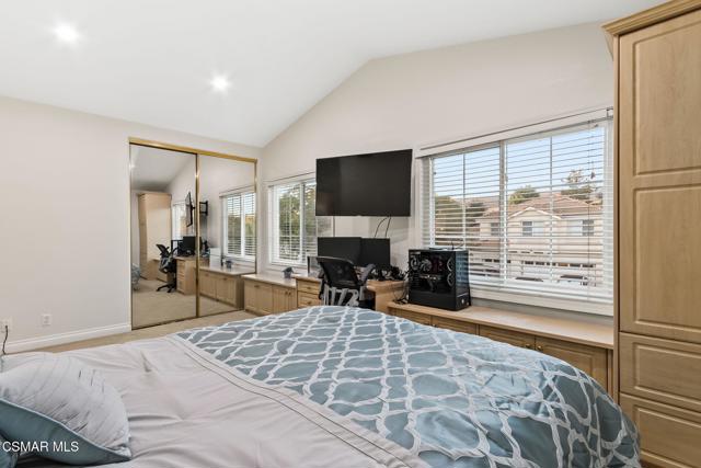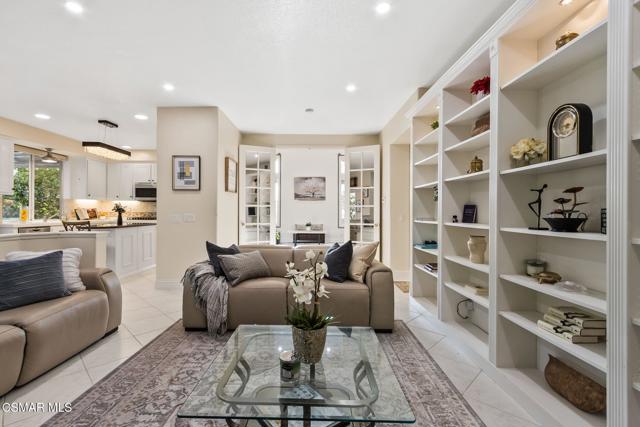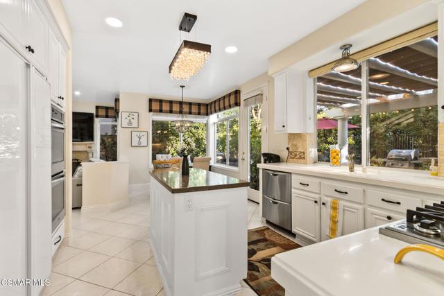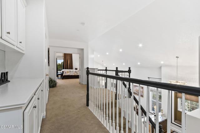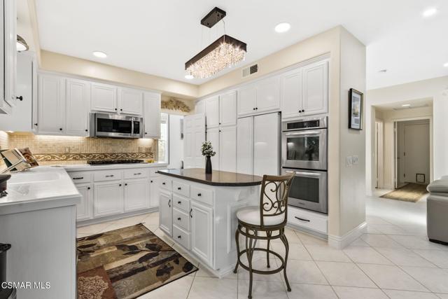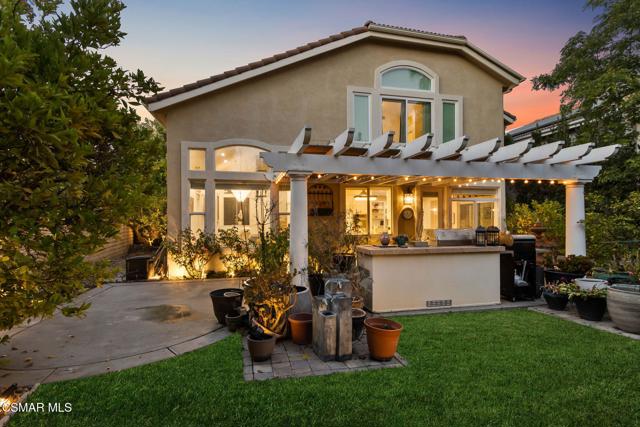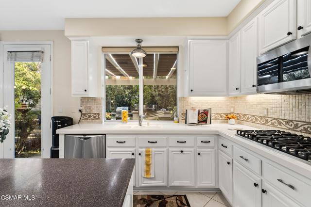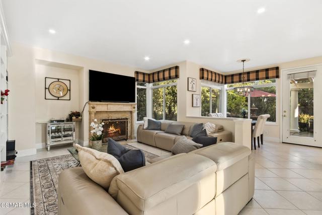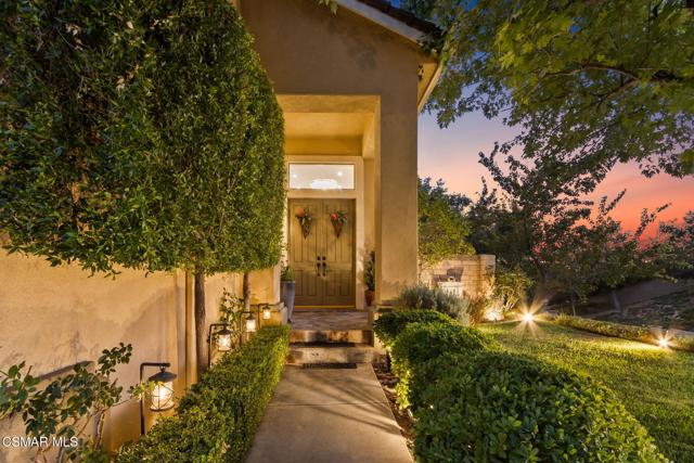 Don't miss the opportunity to live on a secluded cul-de-sac in Campus Hills, the highly desirable Moorpark neighborhood! You'll love entertaining your friends and family from the spacious upgraded kitchen featuring a fantastic island, stainless steel appliances including drawer-style dishwashers, solid countertops, and a tile backsplash. The kitchen opens to the large family room, where you will find great custom built-ins and a cozy fireplace. There is plenty of space, including an open living room and formal dining room with vaulted ceilings, and tons of windows that let the beautiful natural light inside. Upstairs, you'll find the spacious owner's suite with a large, upgraded bathroom that simply must be seen, a generous walk-in closet, vaulted ceilings, a fireplace, and a view of the mountains. Additionally, you'll find three large bedrooms and a full bathroom. Downstairs features the fifth bedroom, a nicely upgraded 3/4-bathroom, and an indoor laundry room. Recessed lighting has recently been added that really brightens this home in the evenings. The backyard features an awesome collection of fruit trees, plenty of privacy hedges, a built-in grill area, and retractable sunshades over the patio. This beautiful home is conveniently close to Moorpark College, Campus Canyon College Preparatory Academy (K-8), two community pools, four local parks (including a great dog park), Happy Camp Canyon's 3,000 acres of hiking and riding trails, and the beautiful Rustic Canyon golf course. This home will go fast, make sure it's yours!