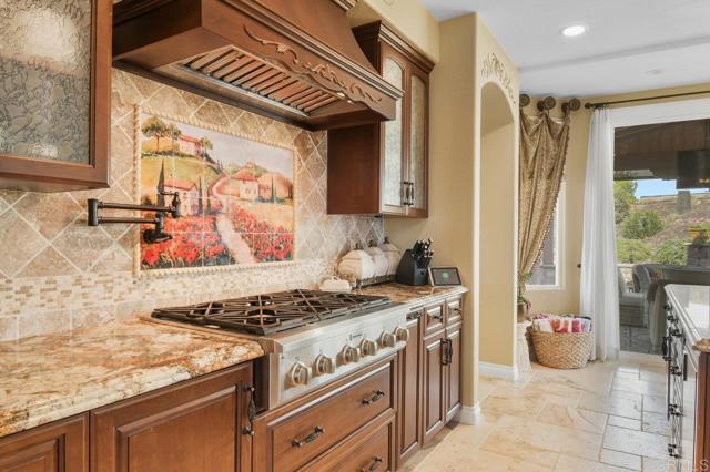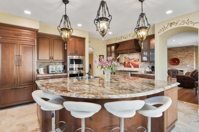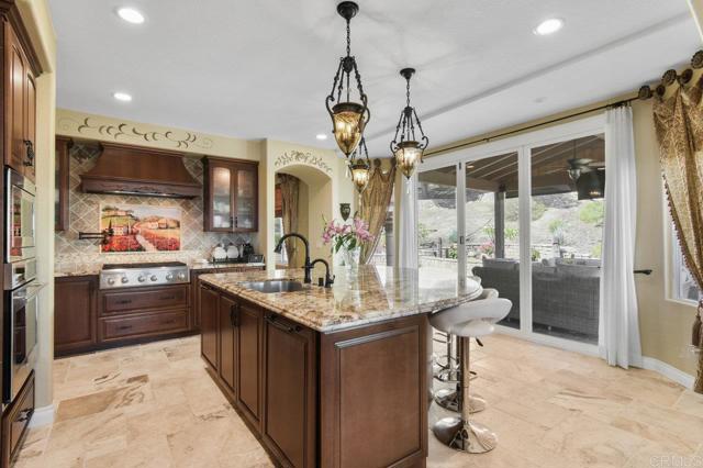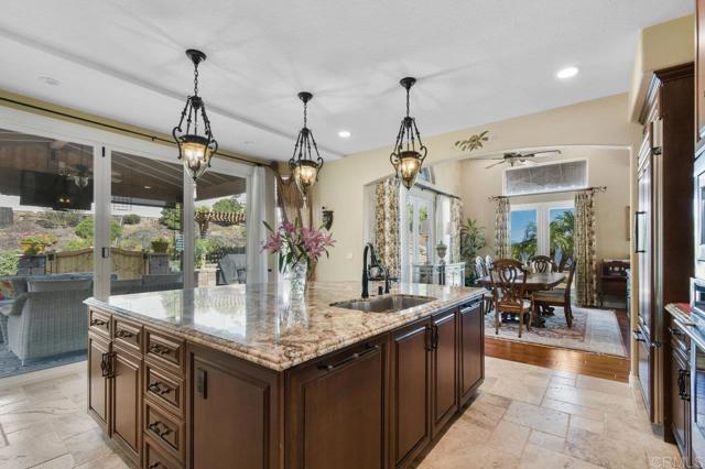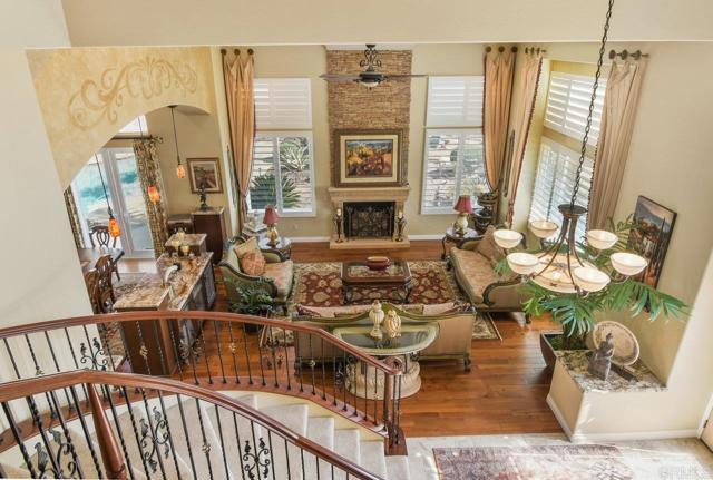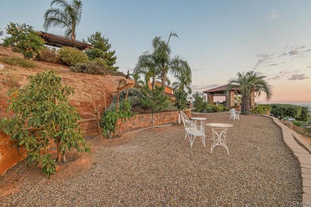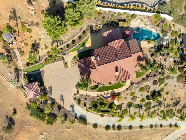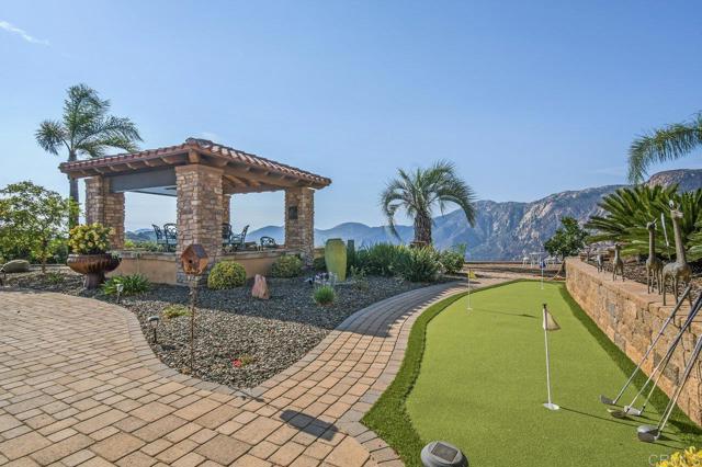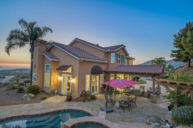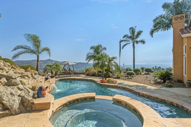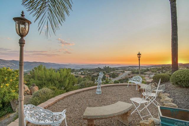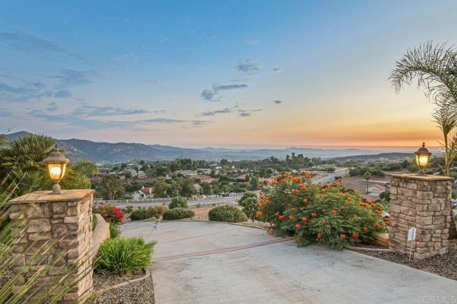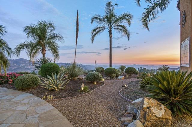Perched atop a serene hillside in Blossom Valley, this extraordinary estate offers a private resort lifestyle with sweeping westerly vistas and sunsets that paint the sky in an ever-changing masterpiece. Set on a meticulously landscaped 3-acre lot, the residence spares no detail in design or craftsmanship. A paver-lined drive with circular entry and pillar lighting leads to the stately façade and 3-car garage. Inside, the home blends elegance and comfort. The main level features a full bedroom and bath, executive office, and formal living and family rooms, each with a fireplace. The gourmet kitchen flows into the dining area and out to a covered patio through accordion glass doors, creating seamless indoor-outdoor living perfect for intimate dinners or poolside gatherings. The backyard is a sanctuary of relaxation and fun—grill and dine alfresco, enjoy tranquil water features, swim in the shimmering pool, or unwind in the spa, both illuminated at night for a magical ambience. Harvest fruit from your orchard or practice on your private canyon-view putting green. Upstairs, the primary suite is a retreat of its own with a sitting area and double-sided fireplace. The spa-inspired bath includes a cedar-lined walk-in closet, dual vanities, oversized shower, and deep soaking tub. Additional amenities include a well-appointed laundry room with storage and folding space, lush mature landscaping, and the crisp mountain breezes that make this home so uniquely desirable. If sweeping views, refined luxury, and total privacy are on your list, this mountaintop gem awaits.