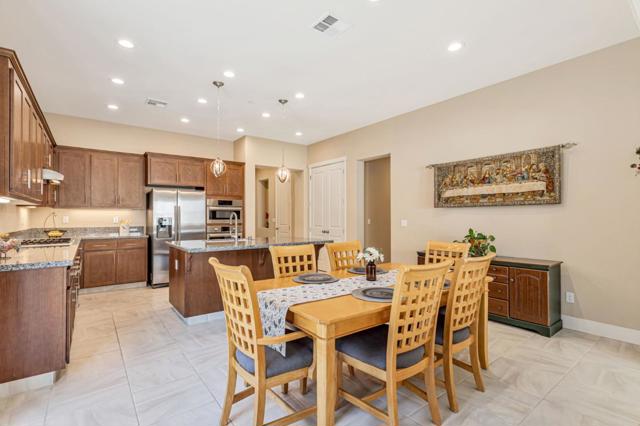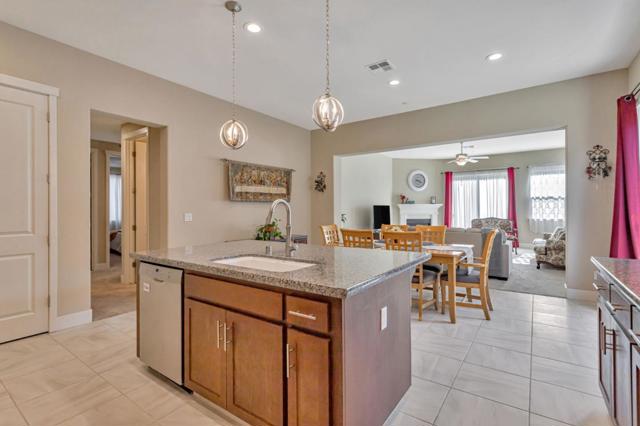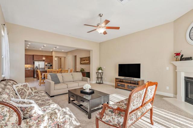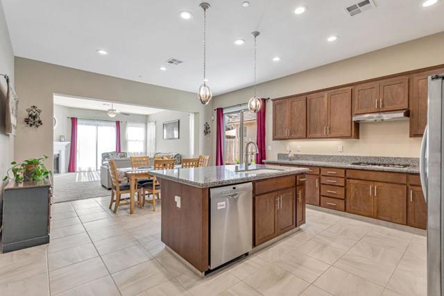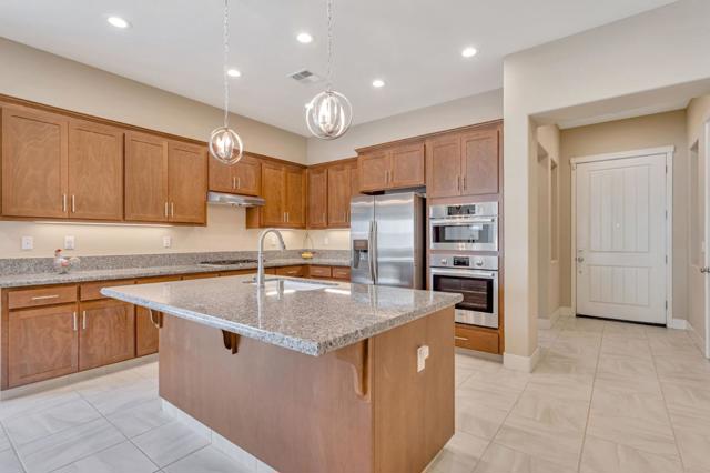 Wonderful Santana Ranch Single Story - This Turn Key Anderson Homes "Monterey" Model is approx. 2003 SF w/4 beds & 2 full baths on a 7,980 SF lot. Welcomed by your fully landscaped low maintenance front yard, covered entry, & Eight ft. tall insulated front door; a tiled entryway leads to a spacious front bedroom & open concept kitchen living area w/gas fireplace. The kitchen features granite counters, Island w/sink, stainless steel Bosch appliances, gas cooktop, built-in oven & microwave. Tall ceilings w/recessed lights provide an open & airy feeling throughout the home. Eight ft tall interior doors give the home a grand feel & are wonderful accents to the spacious bedrooms. The hall bath has marble countertops, double sinks & a tub shower combination. The interior laundry leads to a fully finished attached garage w/ efficient tankless water heater & wide garage door. The main bedroom retreat features tall ceilings, rear yard access, ensuite bath w/double sinks, marble countertop, water closet, stall shower, sunken tub & walk-in closet. The home is equipped with a fire suppression system & security alarm. Bedrooms pre-wired for cable. Rear yard has low maintenance landscaping & is pre-plumbed for a gas BBQ & has external electrical outlets. Community Park & School Nearby.