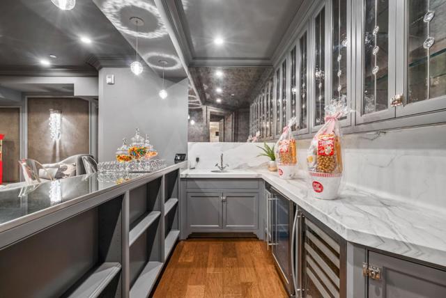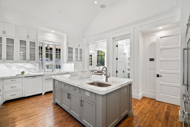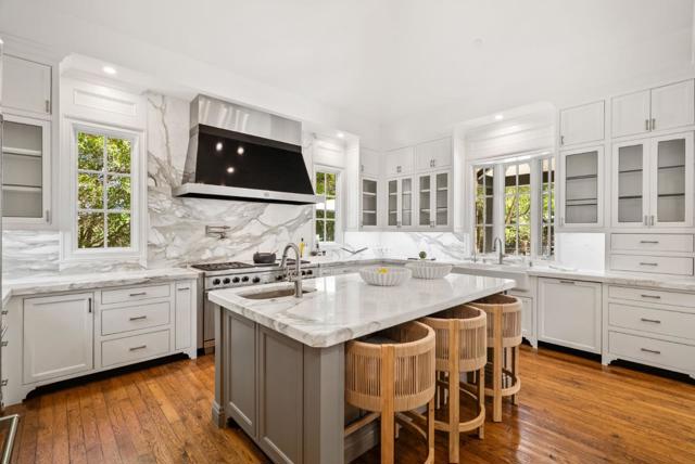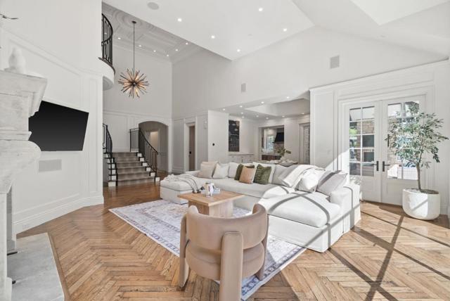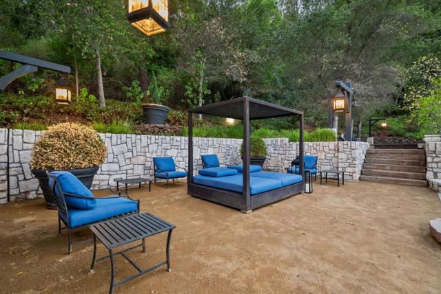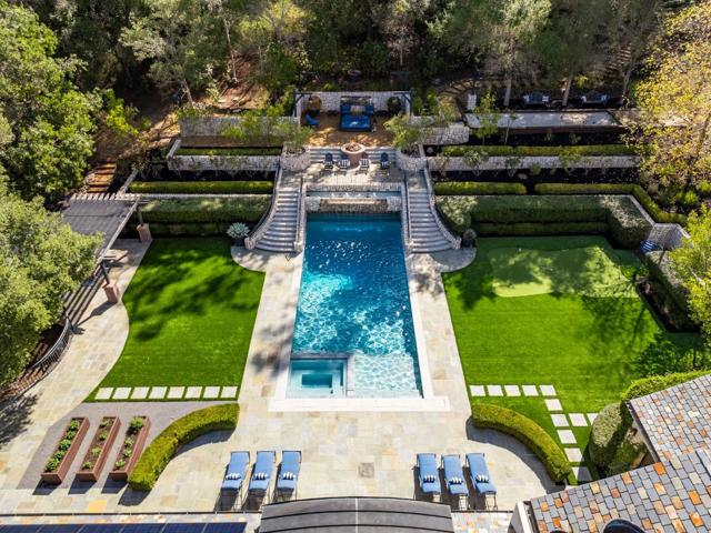 Absolutely Stunning French Contemporary Custom Designer Home in Prime Saratoga Neighborhood. Quintessential California seamless indoor-outdoor living. The luxury amenities, meticulous details and sophisticated craftsmanship throughout are apparent. Beautiful checkered marble entryway, private office, fabulous dining room with built in cabinets, concealed wine refrigerator and incredible ceiling details. Truly, too many quality features to list. Wonderful primary suite with spa like bathroom, expansive walk in closet is accessed by grand staircase. Four additional en-suite bedrooms. Gourmet Chef's kitchen is highlighted by a 60 inch Wolf range, marble countertops, SubZero refrigerator and drawers, oversized island w/ bar seating and walk-in pantry. Effortless flow to the sun drenched breakfast nook and spacious family room with 20 ft ceilings. Incredible floor-to-ceiling glass door and window piece opens to the most spectacular backyard setting imaginable. the resort style backyard has to be seen to be fully appreciated. Covered loggia, outdoor kitchen, legit pizza oven, spectacular pool with ledge waterfall, multiple entertaining and lounge areas, bocce court, putting green, play area and more. Fitness room, craft room and an incredible cinema-quality theater w/ stage and bar.