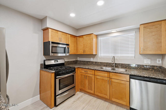 Come see this newly renovated studio on a quiet street in Thousand Oaks. Open the gate and follow the path to your own private oasis. The full-size kitchen features custom cabinets, granite counter tops and stainless-steel appliances including a new refrigerator. The new bath has a large shower, new vanity, and a new stack laundry unit - included. The studio has its own heat/air, no need to share. There is no garage, but the studio comes with a large storage unit.