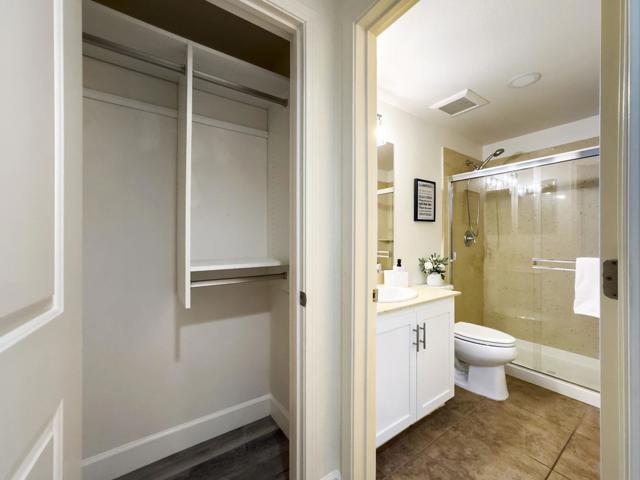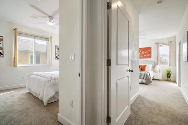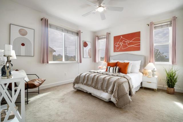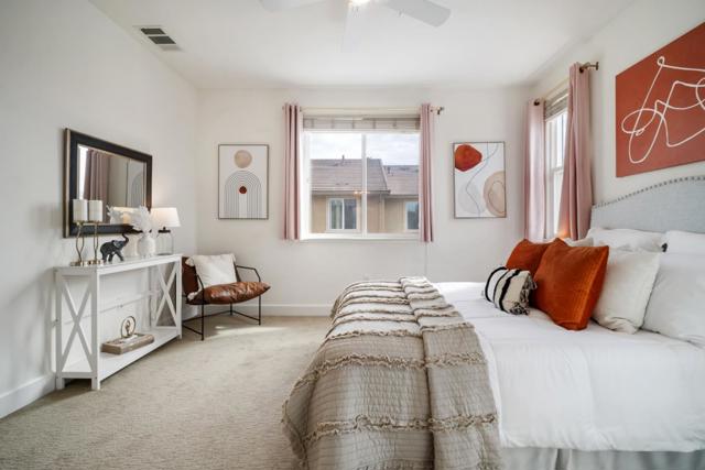 PRIME MILPITAS LIVING! This home offers the ultimate blend of Silicon Valley convenience and modern living. This impeccable corner unit boasts abundant ambient light through large, double-pane windows. The flexible open floor plan is highly desirable: the main level features a full bedroom and updated bathroom, perfect for a home office, guest suite, or in-laws. The open living area features new LVP flooring and flows into an updated gourmet kitchen. Upstairs, 2 bedrooms function as private suites, each with an attached, updated full bathroom. Storage is maximized with custom shelving in all closets. Comfort is ensured by a smart thermostat managing the split-level HVAC, plus fans in every room. Unbeatable Location: Your commute is stress-free with walkable access to the Milpitas BART/Light Rail and instant access to I-880, I-680, 237, & 101. The home is within walking distance of the elementary school and a community park. Major retail, including the Great Mall, Trader JJoe's, Costco, and Sprouts, are moments away and a walking/running trail right behind the community. The 2-car garage is pre-equipped with a Level-2 EV Charger and smart opener. Enjoy one of the lowest HOAs in the Bay Area! Schedule a private tour today! OPEN HOUSE this week Sat 2-4pm; & Sun 1-4pm.