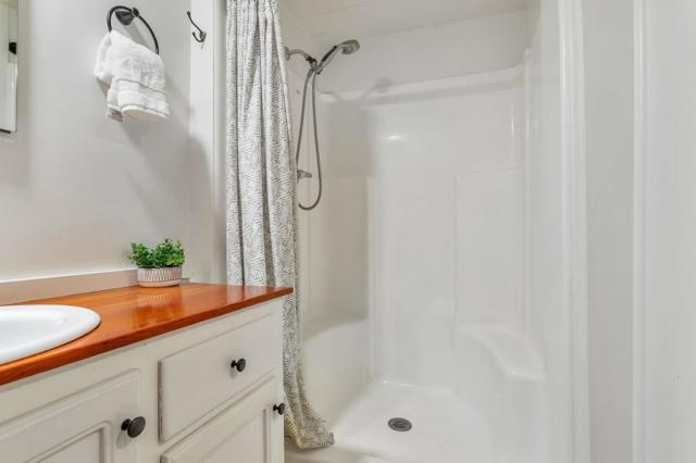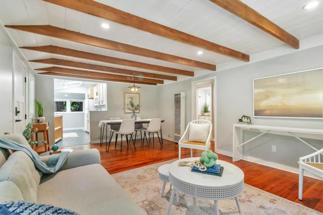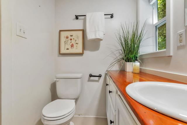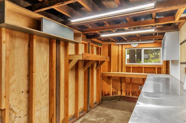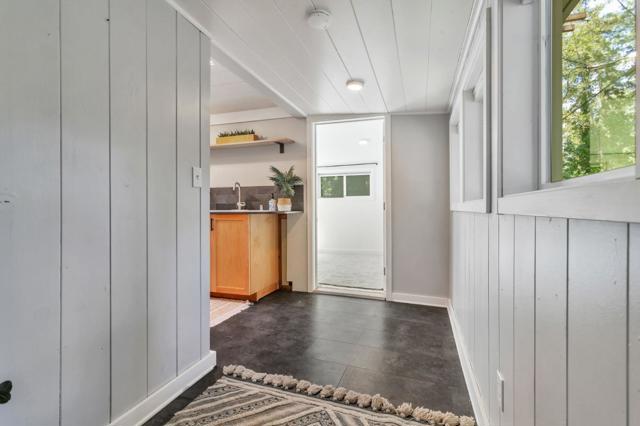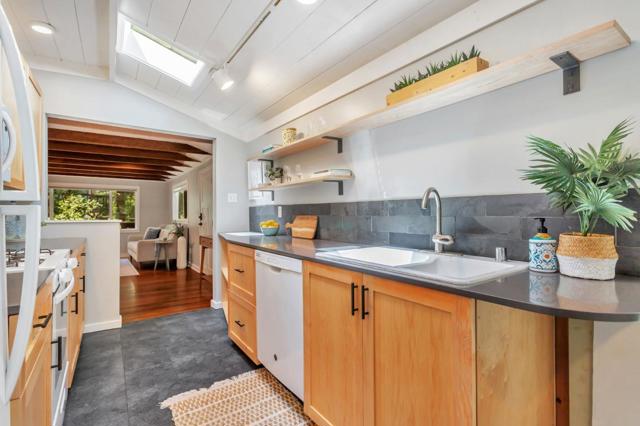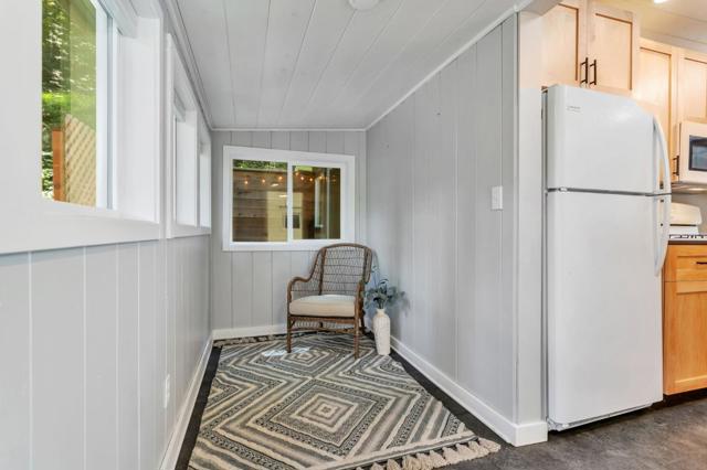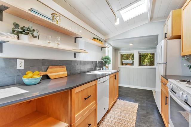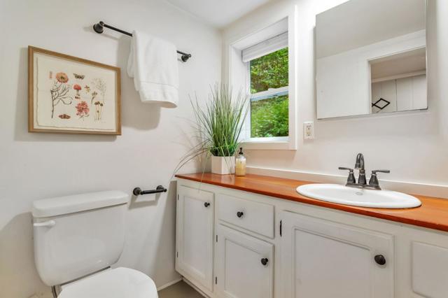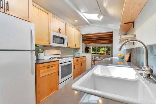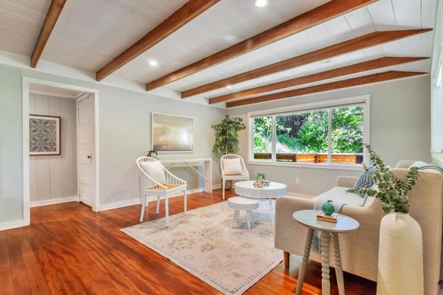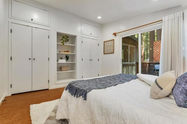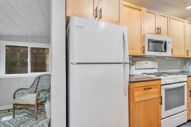 Super charming Ben Lomond home - this can be your place to truly relax and enjoy the Santa Cruz mountains & redwoods. This home was extensively remodeled circa 2019 and features gorgeous wood floors, exposed beam ceiling in the living room, skylights & double paned windows. Enjoy coffee on your inviting covered front porch and take in the views of the trees. The main bedroom has it's own private balcony, high ceilings & cork floors. The bonus room has brand new carpet, skylight and lots of windows to let in the light. The kitchen features a gas stove, skylight and plenty of counter space. There is a nook in the kitchen that has been used as a great office area. Under the home you will find a workshop area and extra storage. This is a charming retreat home with modern updates. Welcome home!