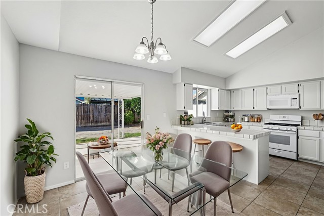 Charming single-story home featuring 3 bedrooms and 2 bathrooms with a 2-car garage and RV gate. Enjoy a bright, open floor plan with skylights and a bay window in the living room, complete with a cozy fireplace. The kitchen offers a convenient bar for casual dining, while the primary suite boasts a double vanity. Step outside to a fenced backyard and relaxing back porch, perfect for entertaining. One or more photos have been virtually staged. Schedule a showing today!