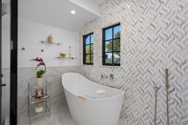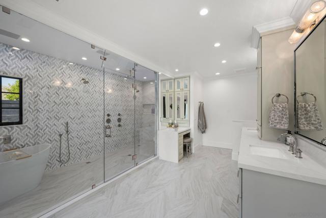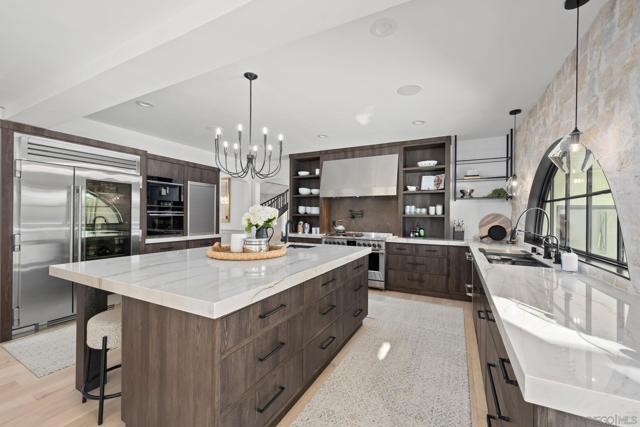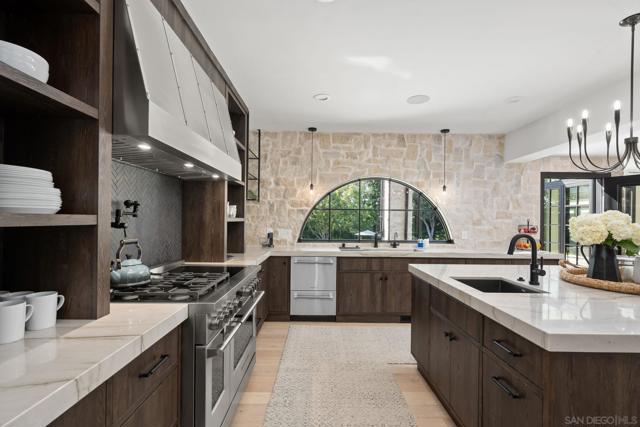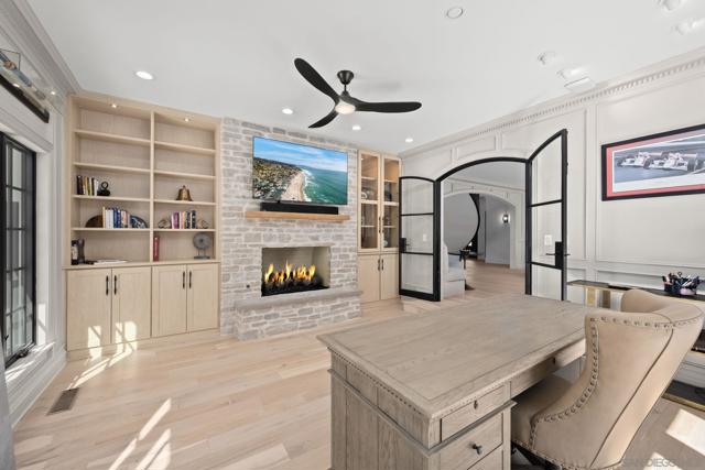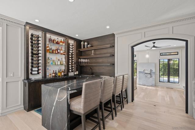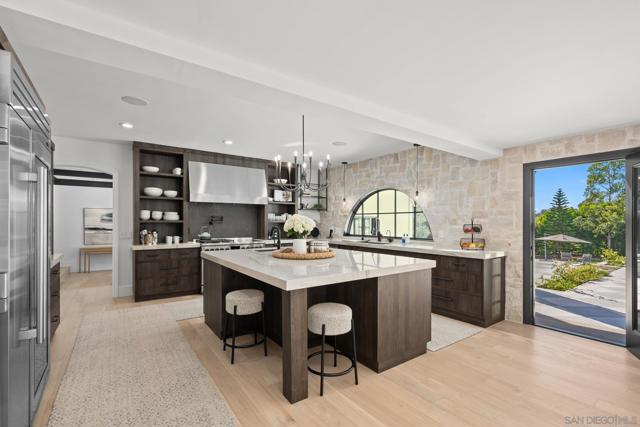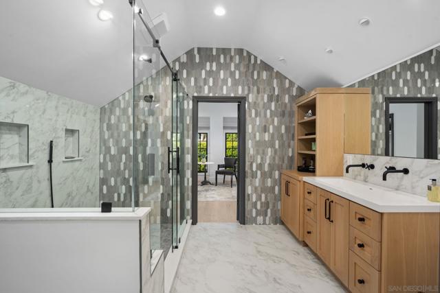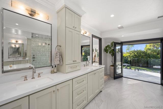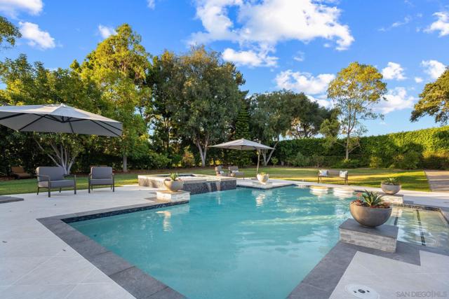 This Impeccable Custom Estate feels more like New Construction and is an Entertainers Dream! Current Sellers just rebuilt all bedroom suite bathrooms and made additional and incredible enhancements, which included adding more outdoor living, enhanced landscape plus adding a jacuzzi to the salt water resort pool. The location is A++ with a full SOLAR Tesla roof, all new doors and windows throughout, custom steel front door, oversized fire pit and 2 large outdoor TVs, great BBQ area, designer kitchen w/top end appliances. The Primary suite is oversized with sep Her & His custom closets that will have any the fussiest happy and the NEW Spa Bath takes luxury to a new level. The office has a separate entrance for those who work from home and the game room is the best place to hang with custom waterfall wet bar with wine storage, champagne area plus ice maker. The property offers a main floor guest wing and there is lots of room to add an ADU "guest home" if desired. The sense of arrival from the street is impressive with a long driveway leading guests up to the walk way.