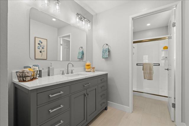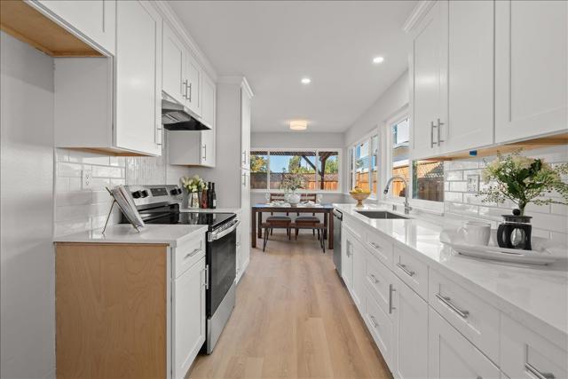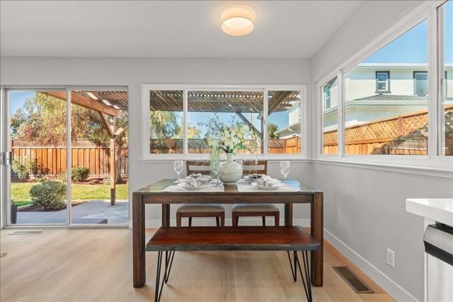 Beautifully renewed one level Cambrian home on the border of Los Gatos. Formal living room with cathedral ceiling and wood burning fireplace. Separate dining area for entertaining. Brand new kitchen with white shaker cabinets, quartz counter tops, subway tiled backsplash, new stainless steel appliances, oven/range, vent-a-hood, dishwasher, sink and faucet. Informal breakfast nook & recessed lights. Attached family room with slider to backyard. Completely remodeled bathrooms with new cabinets, quartz countertops, porcelain tiled floors, mirrors, new lighting and fixtures. New LVP flooring throughout. New baseboards, new interior doors and hardware & new lighting. New double pane windows throughout. Spacious primary suite with new closet doors and built-ins. New painting inside/out. Inside laundry room with gas/electric dryer and built-in cabinets. New fencing. 2 car garage with cabinets. Fresh and mature landscaping. Lovely mountain views. Centrally located close to BelGatos Park, Santa Rosa Trail, major shopping and freeway access. Guadalupe Elementary, Dartmouth Middle School, and Leigh High School recognized as a 2024 National Blue Ribbon School by the U.S. Department of Education. Short distance to downtown Los Gatos, Campbell, and Willow Glen.