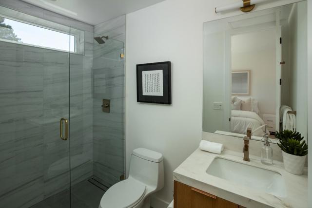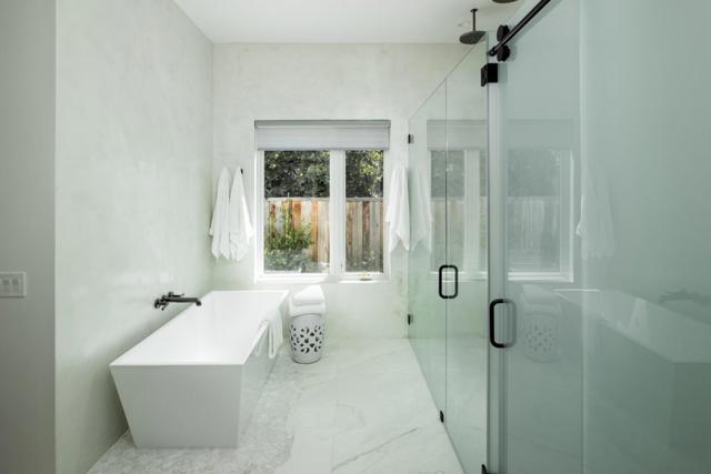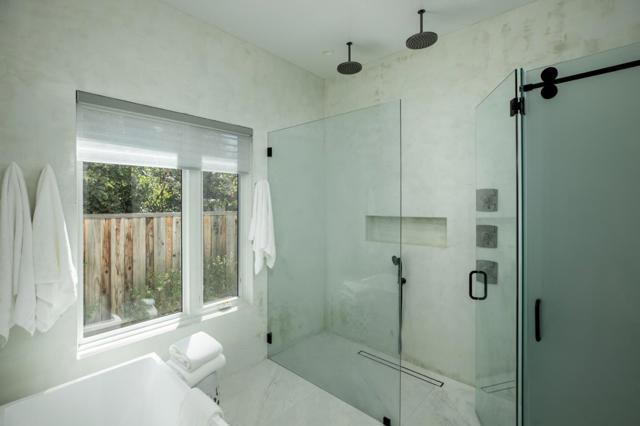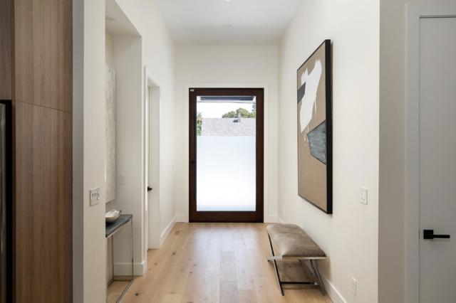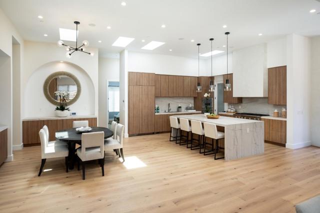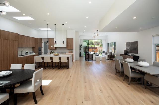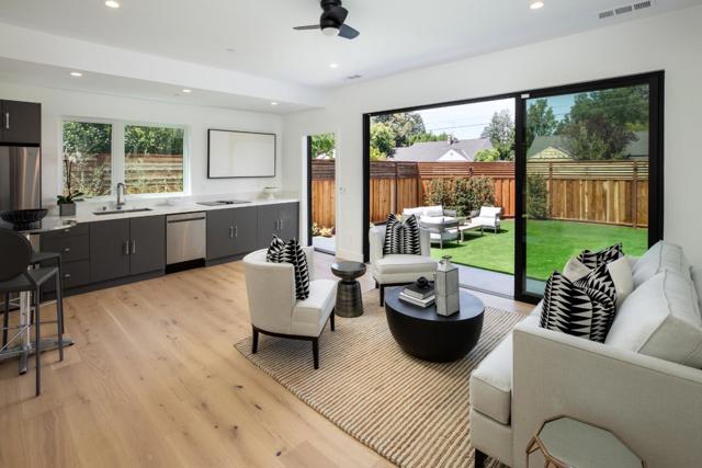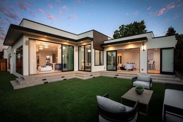This ultra-modern home, built in 2024, offers sleek design with a wraparound linear reflecting pool, spacious open-concept floor plan on one level, and the added advantage of a fully independent ADU with its own address. The 4-bedroom, 4-bath main home begins with a pivoting glass door opening to an expansive great room with retractable glass wall to the rear yard, a gourmet kitchen with counter seating, and a separate wine bar. The primary suite features dual walk-in closets, a luxurious spa bath, and direct outdoor access. Entered through its own gate, the 2-bedroom, 2-bath ADU shares the rear yard with a retractable glass wall and includes a full kitchen and laundry hookups, creating flexible space for rental income or extended family living. Eco-friendly synthetic lawn, a 2-car garage, proximity to shops and restaurants, and access to renowned Cupertino schools complete this property.