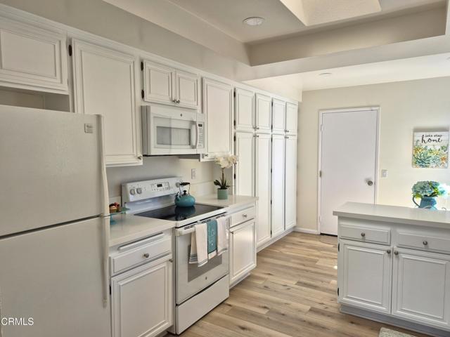 Welcome to Leisure Village, Camarillo's premier 55+ retirement community! This popular Capri model is located ON THE GOLF COURSE. It offers 2 bedrooms, 2 bathrooms, and a very RARE 2-car garage--a feature highly sought after and hard to find. The home has been recently updated with luxury vinyl plank flooring, fresh paint, smooth ceilings, updated bathrooms and gorgeous quartz counters in the eat-in kitchen, making it truly move-in ready. It even has a newly installed HVAC system.The highlight of this property is the incredible golf course view from the living room, primary bedroom & open patio, perfect for relaxing or entertaining while enjoying the serene green surroundings. Leisure Village is a secure, guard-gated community with an abundance of amenities, including a golf course, fitness center, heated pool and spa, tennis, pickleball, billiards, woodshop, and over 50 clubs and activities. HOA fees include water, sewer, trash, cable TV, internet, landscaping, roof maintenance, and 24-hour security, giving you peace of mind and a low-maintenance lifestyle.Don't miss the chance to own this beautifully updated home with spectacular golf course views & 2-car garage in one of Camarillo's most desirable 55+ communities!
