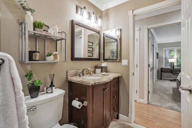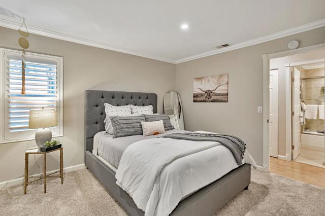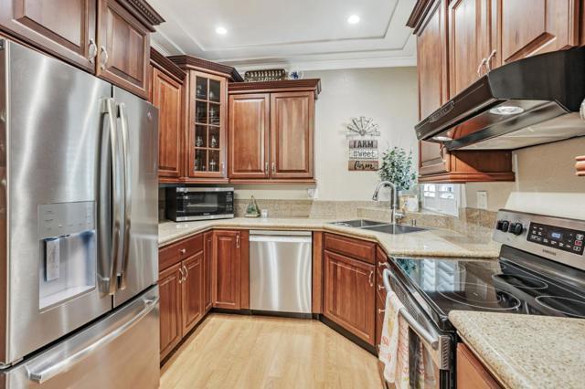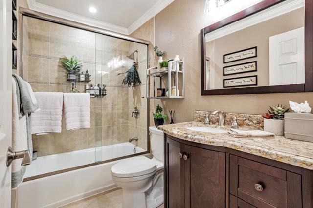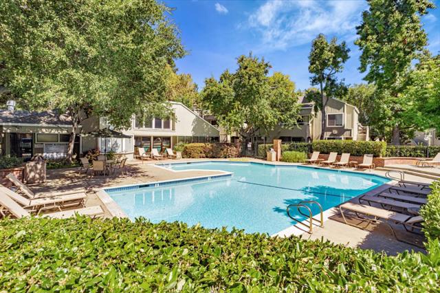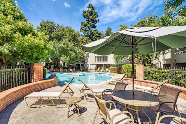 Remodeled top floor unit in desirable Hamilton Place! This light filled home features spacious vaulted ceilings, plantation shutters, recessed lighting, and designer touches throughout. The updated kitchen offers granite countertops, abundant cabinet storage, and stainless steel appliances. Enjoy meals in the dining area with its tray ceiling detail and elegant chandelier. The primary suite includes a walk-in closet, vaulted ceiling, and a modern glass shower. A spacious hall bath, indoor laundry with washer/dryer, private patio, detached 1 car garage with storage, plus an additional assigned parking space add to the convenience. Central air conditioning ensures year round comfort. Set within the highly sought after Hamilton Place community, residents enjoy resort-style amenities including a pool, spa, clubhouse, and lush greenbelt walking paths. Ideal location-just minutes from freeways 880, 17, and 85 for easy commuting, with nearby shopping and dining at The Pruneyard, Whole Foods, and Trader Joes, plus outdoor recreation along the Los Gatos Creek Trail. Whether relaxing by the pool, enjoying your modern kitchen, or cozying up by the fireplace, this unit truly has it all.