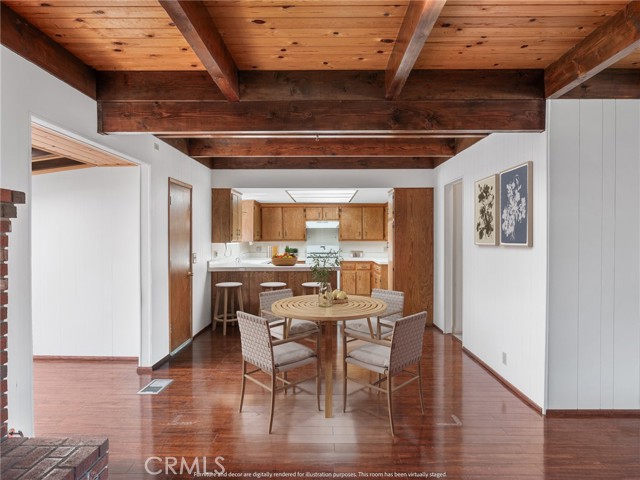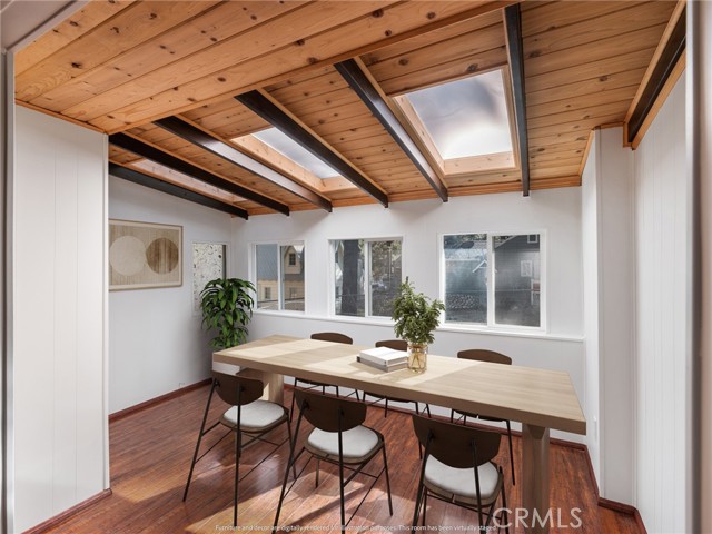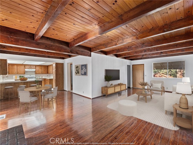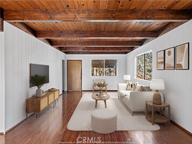 Check out this spacious 3 bedroom 2 bath single family home in the mountain community of Wrightwood offering 1,836 +/- square feet of living space. This 2-story home was just refreshed with new white interior paint downstairs (photos updated) and is incredibly inviting upon arriving with its raised and oversized front covered deck/porch to enjoy the smell and sounds of the mountains. The lowest ground level has a workshop space that can easily be converted back to the single car garage from when the home was built. You enter the home into a large living room that wraps around to the dining room, rear sun room and full kitchen. Additionally there's one bedroom and full bathroom downstairs as well as the laundry room with storage. Upstairs are two good sized bedrooms that benefit from extra large closet spaces. This home can retain its charm and be updated by updating interior paint and flooring. The backyard offers a fenced backyard with several pine trees and a serene, quiet environment to call home. The home is located not too far from downtown Wrightwood with great places to shop and eat as well as the ski resort. Wrightwood is a perfectly placed small community that offers convenient access to highways and freeways for commuting.