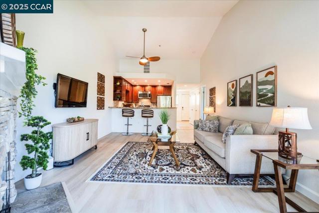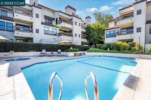 INCREDIBLE OPPORTUNITY & BEST LOCATION - just steps away from downtown! Elegant TOP-FLOOR Condo in highly coveted South Villas! Enjoy the 'Good Life' in this chic condo in the heart of Walnut Creek! Upon entering, you will experience a tranquil light and airy floor plan with tile entry, fresh paint, soaring ceilings, and new luxury vinyl plank flooring! The open kitchen is tastefully remodeled with granite countertops, tile flooring, stainless steel appliances, recessed lighting, and curved granite breakfast bar! This lovely home has a spacious living room with volume ceilings and wood-burning fireplace with mantel, which leads to a private balcony with serene nature views! There is a large primary suite with ensuite bath, double closets, and shower over tub. Additional features include a second bedroom with built-in shelving, perfect for home office and guest room, a convenient half bathroom, and INDOOR FULL SIZE WASHER/DRYER! This complex has a gleaming pool, spa, ELEVATOR, and dedicated carport. This home is in THE BEST LOCATION off Olympic Blvd at the back of the complex. It’s just minutes away from hiking trails, BART, Broadway Plaza shopping, tasty eateries, Whole Foods & Trader Joe’s, and top-rated schools! Open Sun., 10/26 from 2-4P!