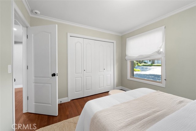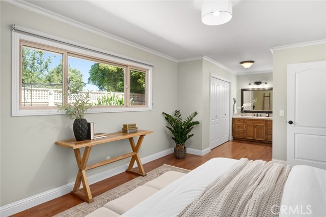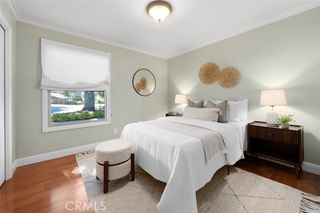 Enjoy single level living in this bright and beautifully maintained 3 bedroom and 2 bath home with approximately 1,666 square feet of living space on a 4,750 square foot lot. Located on a cul-de-sac and backing to a golf course, this property offers scenic views of the Irish Hills. There is hardwood flooring throughout the main living areas and bedrooms and travertine tile in the kitchen and bathrooms. Crown molding, recessed lighting and updated fixtures enhance the inviting interior. The living room features a gas fireplace, iron railing, and large windows. Just off the living room, a wet bar with a built-in wine fridge provides a convenient entertaining area. The kitchen features granite countertops, custom maple cabinetry and stainless appliances. A dining area with large windows and slider door leads to a covered patio, creating easy indoor and outdoor living. The rear and side yards with grass, citrus trees, grape vines and rose bushes provide space for outdoor enjoyment. Additional highlights include indoor laundry off the kitchen, a two-car garage, refreshed landscaping with new bark and plantings and a newly installed sewer lateral. This move-in ready home is well cared for and full of charm. Near schools, shopping, and hiking, it should not be missed! Information not verified.