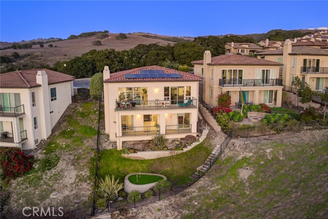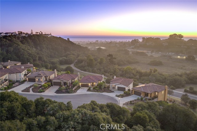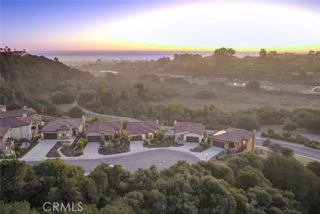 Welcome to Las Ventanas del Mar – a private enclave of homes overlooking the scenic Ocean Views through Price Canyon. Built just ten years ago, this community was organized to take advantage of views from every home. Gated enclosed entry with covered private patio flows into front foyer with discrete powder room. Perched above the Price House Historical Park, this home offers single-level living with no steps from the garage/entry through the main level that includes a spacious great room with cozy fireplace and open concept kitchen, large laundry/utility room, luxurious primary suite and entertaining decks stretching the whole width of the home. Epicurean kitchen offers plenty of counter space for working, or displaying food – and even a bar area for convenient dining plus high-end GE stainless steel appliances.. Laminate flooring throughout in rich tones make it visually pleasing and easy for pets and children. Primary bath includes tons of storage, dual vanities, large walk in closet and private water closet. Downstairs guests and children enjoy two ensuite bedrooms with deck access and a private living space that also opens to the outdoors. The backyard boasts a terraced yard with custom putting green! Views from almost every room make this a showcase home and an entertainer's dream.